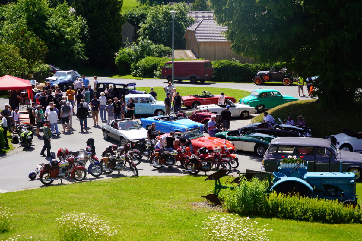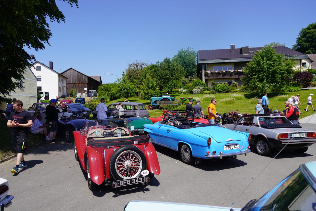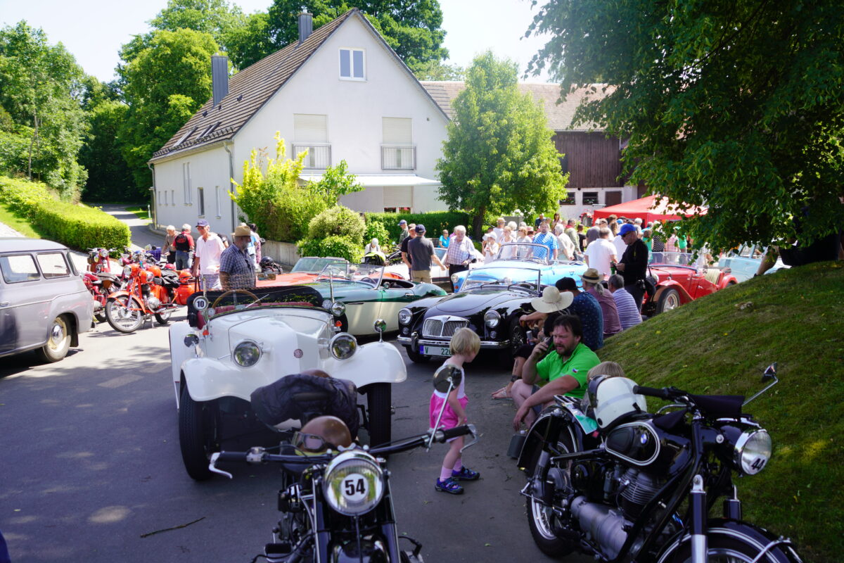 Die Teilnehmer der “25. Sascha-Kolowrat-Fahrt” zeigen in Woppenrieth Autos und Motorräder. Sie starteten im tschechischen Diana und waren über Waidhaus nach Bayern eingereist – sie kamen direkt über Georgenberg nach Woppenrieth.