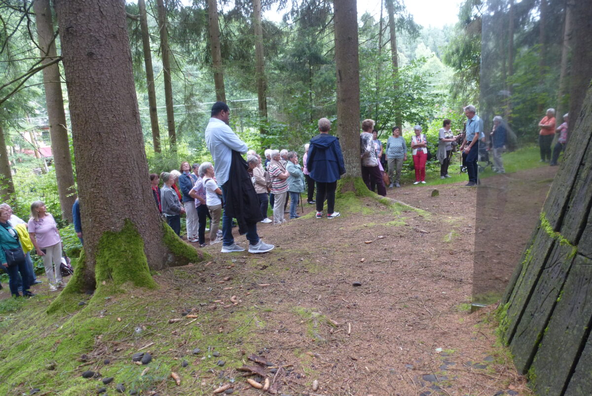 „Im Grenzland gibt es doch auch sehenswerte Fleckchen“ war unter den fünfzig Ausflüglern des „Generationencafé“ und „Nachmittagstreff“ beider Kirchengemeinden Kaltenbrunn am Dienstag, 5. August, zu vernehmen. Mit einer Vorstellung seines Rotwildgeheges durch Wirt Johann Maurer in Neuenhammer startete das gut organisierte Programm. Pleysteins Altbürgermeister Hans Walbrunn erwies sich dann als exzellenter, humorvoller Führer, der mit lustigen Begebenheiten und Witzen bei den Zuhörern beste Zwerchfellmassage betrieb.