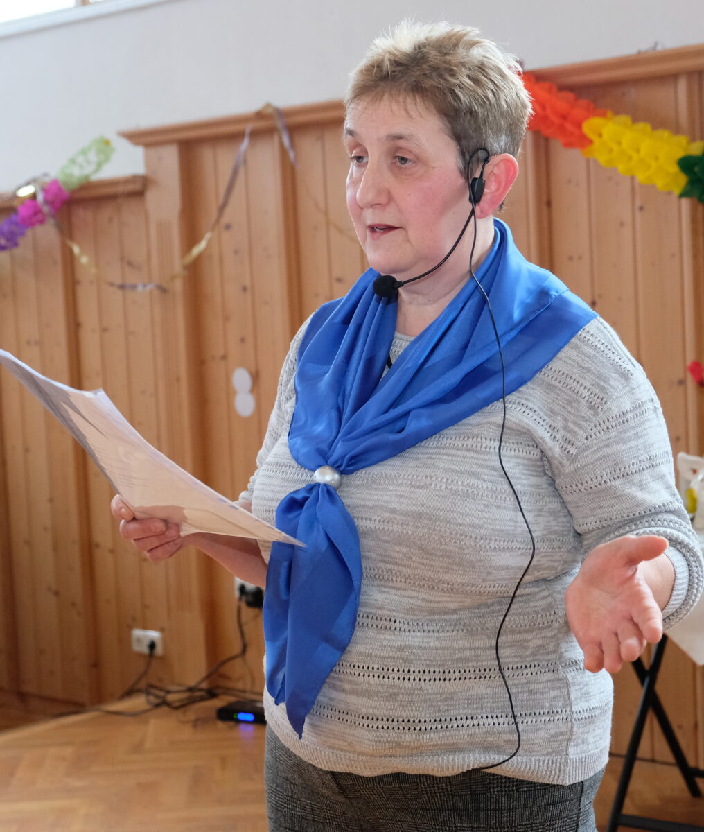 Das Frauenbund-Vorstandsmitglied beleuchtete rückblickend das 50-jährige Frauenbund-Jubiläum, um zusammenfassend festzustellen: „Das Organisieren brauchte Zeit, doch jede war dazu bereit, nur das Beste hier zu geben, sonst könnt der Frauenbund net so was erleben“. Die Büttenrednerin thematisierte zudem den Gemeinschaftsgedanken: „Nur zusammen ist des schön. Jeder bringt sein Talent mit ein“. Auch vom „Alleingang“ des Pfarrers beim Festzug war die Rede: „Da sitzt der Pfarrer im Schützenhaus schon am Tisch, und lacht uns entgegen, ganz fröhlich und frisch“. Ein „Auftrag“ an das gesamte Narrenvolk, bei der Faschingsgaudi besonders auf den Pfarrer Acht zu geben.