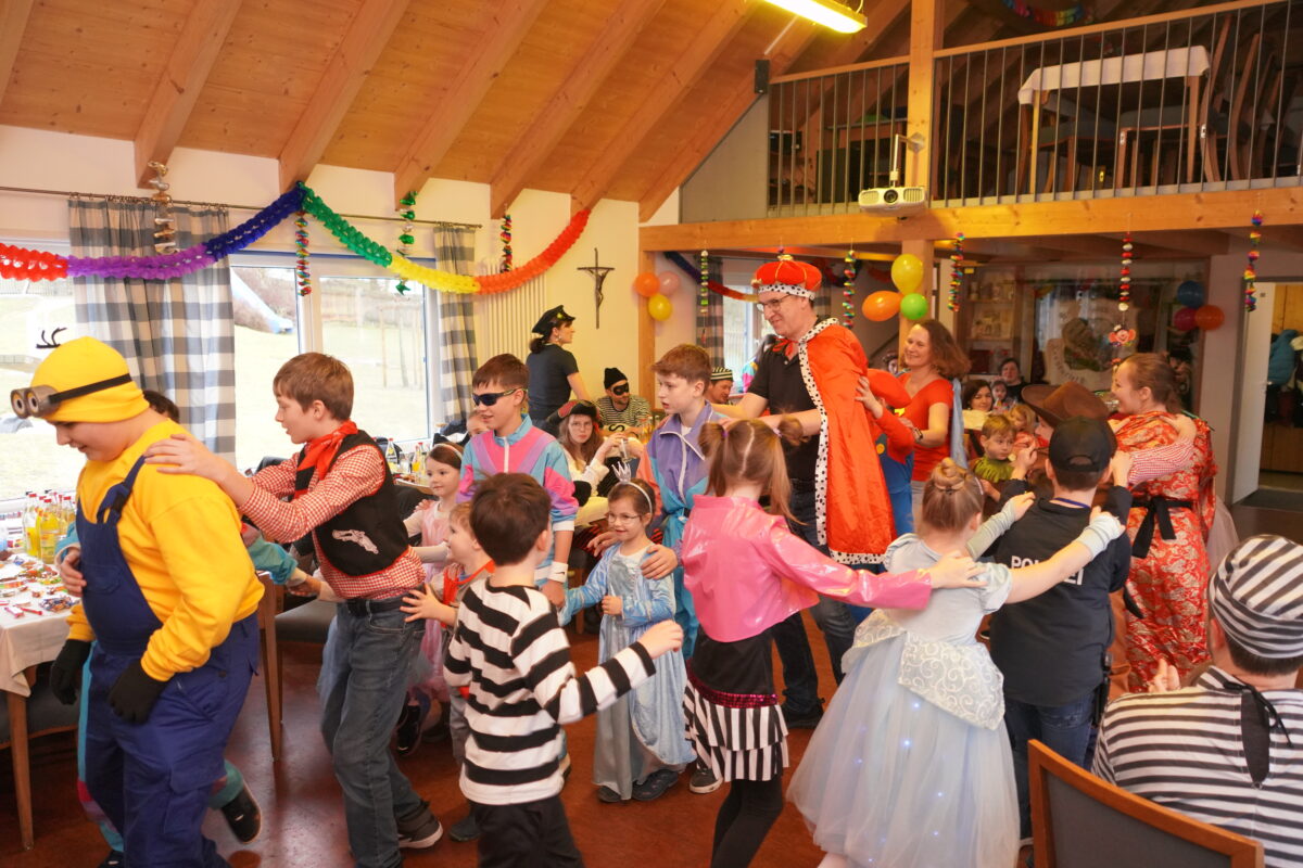 Trotz frischer Temperaturen war von Kälte keine Spur zu spüren, denn die Stimmung brachte das Dorf zum Glühen. Im vom „Ottl Hanse“ aufgeheizten Dorftreff ging das Spektakel nahtlos weiter. Dort wartete bereits der Jugendbeauftragte, der 15-jährige Franz-Josef Riedl mit seinen Team Max Bodensteiner, Julian Waldhier und Thomas Bodensteiner, um nach seinen Worten „die Leute zu belustigen“ und die Veranstaltung souverän geschmissen haben. Der Dorftreffboden bebte beim Rucki Zucki, es flogen die Löcher aus dem Käse, die Omi fuhr im Hühnerstall Motorrad und spätestens bei der Polonäse zog eine fröhliche Menschenschlange durch den Saal. Während sich die jungen Narren auf der Tanzfläche austobten, genossen Eltern das bunte Treiben bei Kaffee, leckeren Kuchen und dem einen oder anderen Nachmittagsbier.