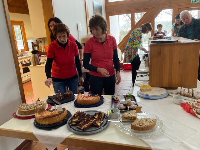 Es gab keinen leeren Platz, auch nicht in der Sängerstube, denn hier wurden verschiedenste Kuchen und Krapfen mit Kaffee angeboten. Die Animateure, Marga, Sophie, Maria, Silvia und Corinna, hielten die Faschingsbegeisterten auf Trab.
