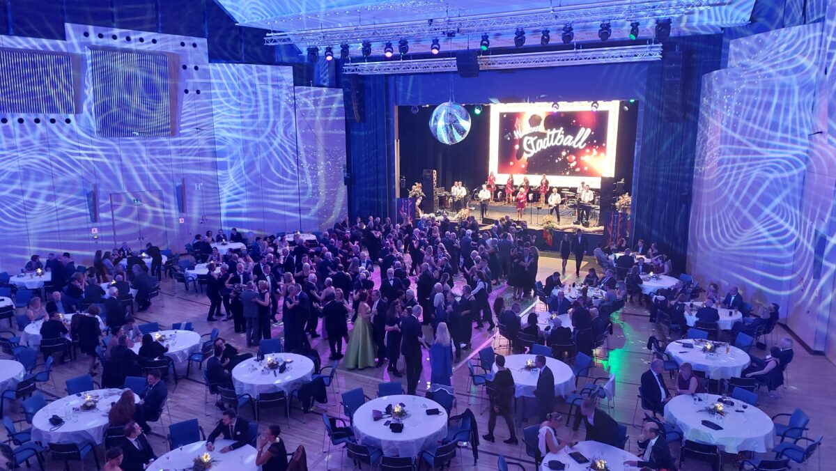 Ausverkaufter Stadtball vor bunter Kulisse