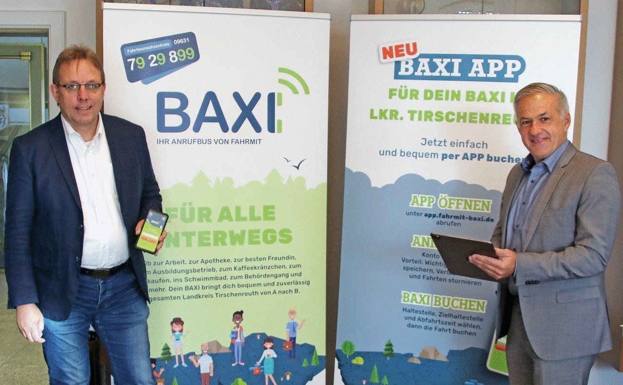 Landrat Roland Grillmeier sieht das BAXI nach wie vor als ein absolutes Vorzeigeprojekt: „Die Möglichkeit, nun per App seine Fahrten zu buchen und somit alle Informationen auf einen Blick zu haben, ist ein weiterer Schritt in die richtige Richtung. Auch im Hinblick auf unsere Ziele bei der Digitalisierung im Landkreis Tirschenreuth sind wir damit auf dem richtigen Weg.“