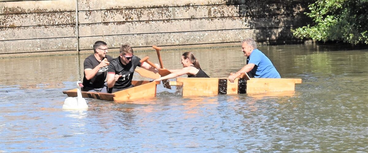 Traditionsgemäß startete das Fischerfest am Samstag mit der Austragung des Sautrogrennens. Dazu begrüßte der Vorsitzende des Fischereivereins Wolfgang Specht die Gäste beim Stadtweiher beziehungsweise am Festplatz beim Kastenhaus. Zweite Bürgermeisterin Anita Heßler war eine der Teilnehmer und ist zugleich Schirmherrin, die ja bekanntlich für das Wetter zuständig sein soll. “Und das konnte nicht schöner sein…”