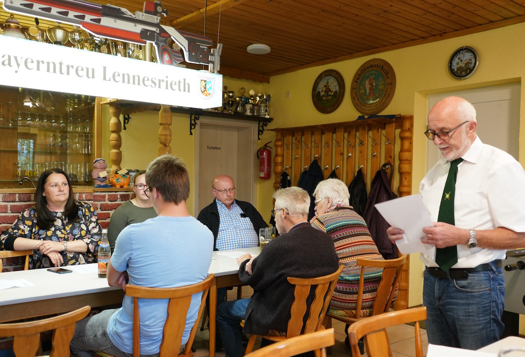 Bernd Bodensteiner steht den Bayerntreuschützen Lennesrieth nicht nur als Schützenmeister an der Spitze, er trifft auch als Baumeister am Schützenhaus voll ins Schwarze. Bei der Jahreshauptversammlung konnte Bodensteiner einige Ehrengäste begrüßen.
