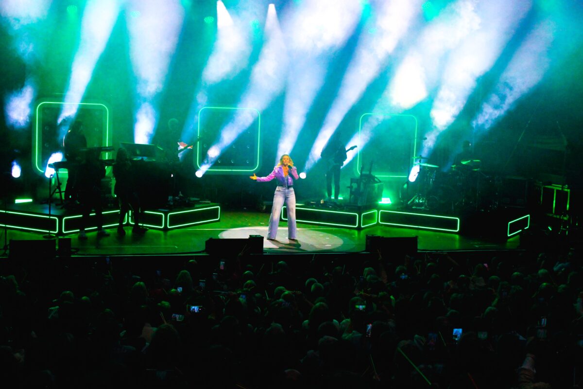 Das lag zum einen natürlich an ihrer Musik, bei der sich die meisten Zuhörer absolut textsicher zeigten – egal, ob beim Charthit „Mein Herz“ oder beim neuen „Au revoir!“. Da wurde mitgeklatscht, mitgefeiert, nur wenige hielt es auf ihren Plätzen. „Ihr seid super!“, schleuderte Egli den Fans immer wieder entgegen, wenn sie sich von den Liedern über die Liebe, die Sehnsucht und die Träume anstecken ließen. Egli war den ganzen Abend nah am Publikum: Sie „interviewte“ ihren Fan Max, der ihr eine Rose überreichte, sie ließ sich mit drei Mädchen, die ihr ein Geschenk gebastelt hatten, fotografieren – und sie ging mehrmals ins Auditorium, um ihre Fans zu herzen, zu knuddeln und abzuklatschen.