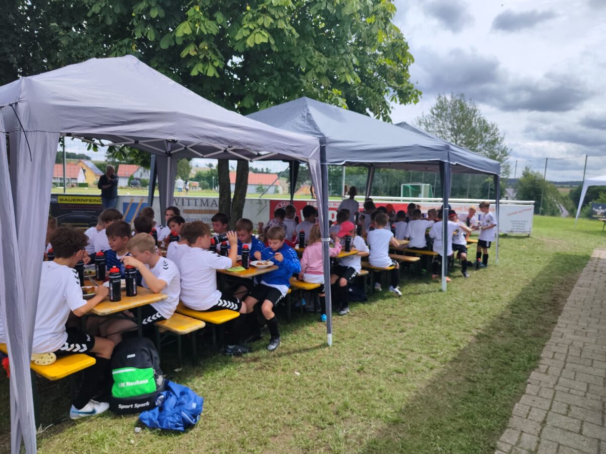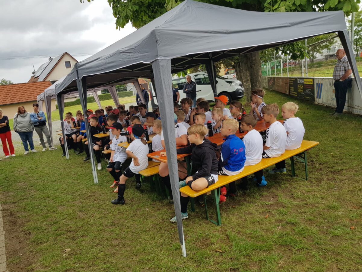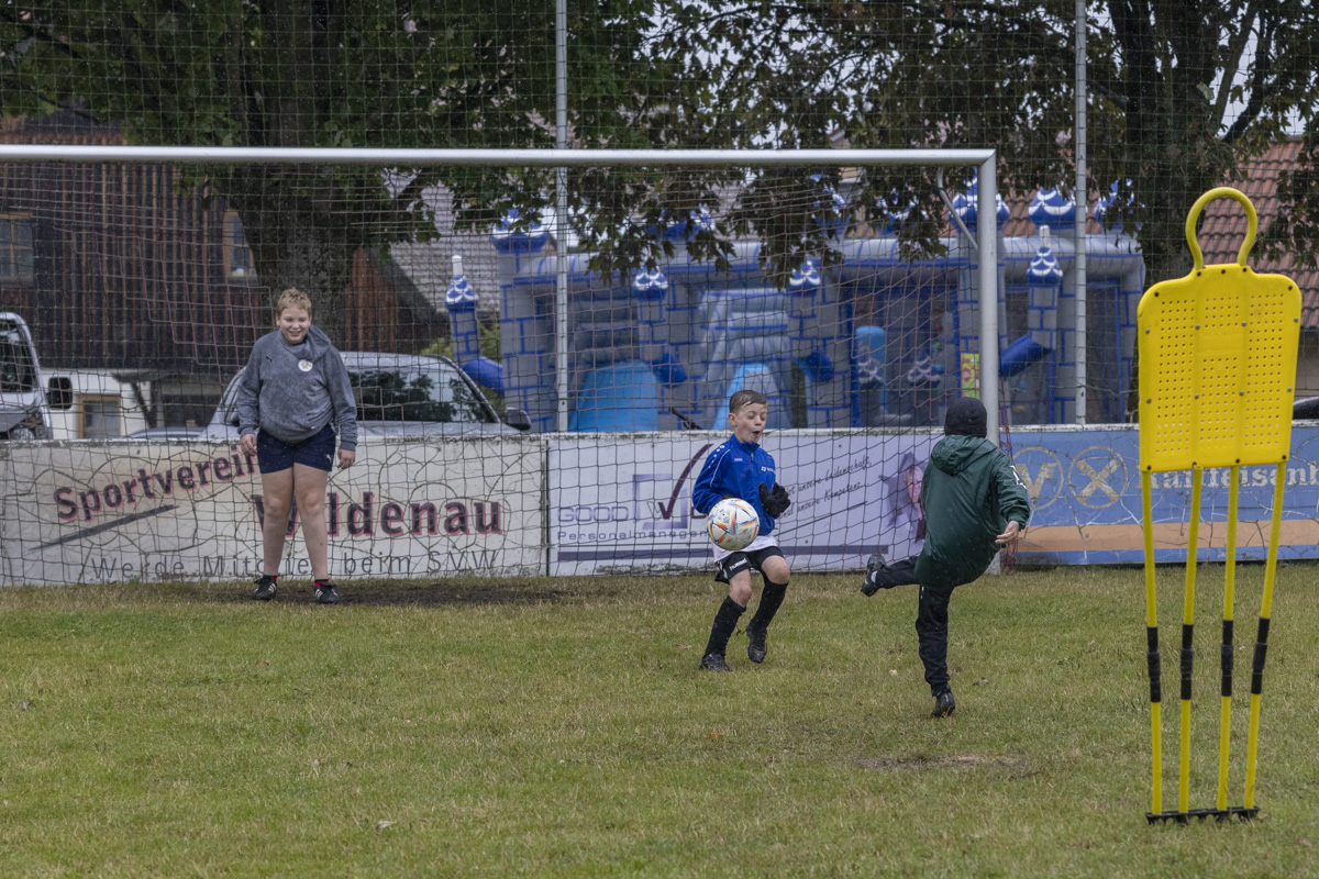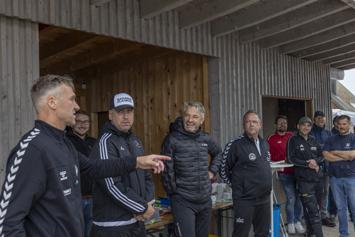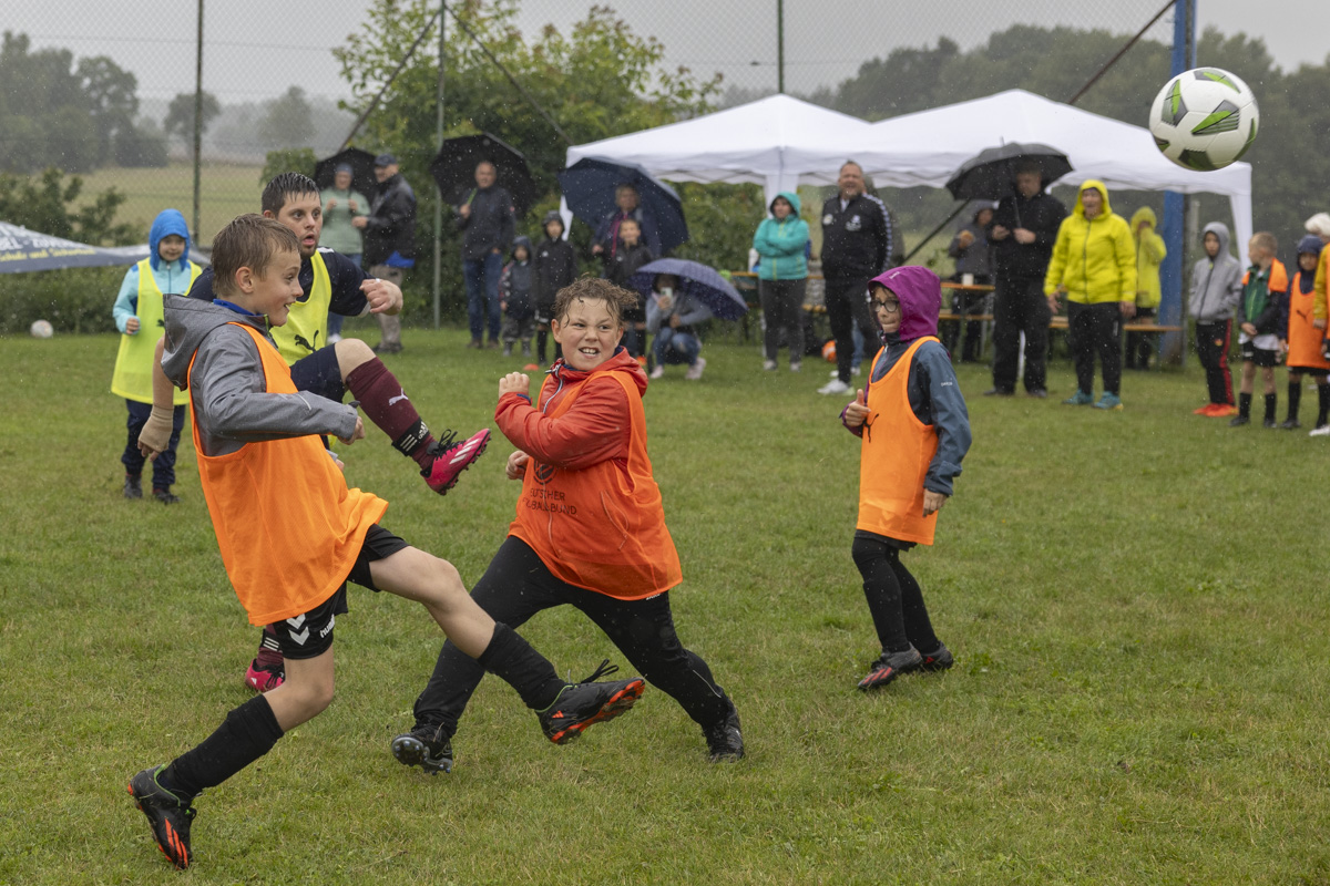 Obwohl auch am dritten Trainingstag dicke Regenwolken über dem Fußballplatz des SV Wildenau hängen, es in Strömen gießt und die Temperaturen kaum über 13 Grad Celsius klettern, ist die Laune bei den Kids grandios. Es gibt kein Meckern und kein Streiten, sondern vollen Einsatz am Ball. Die Kinder und Jugendlichen saugen das Wissen der Fußballlegenden begierig auf und lassen sich nicht vom Wetter ablenken. An mehreren Stationen beweisen sich die jungen Teilnehmer bei Dribbel- und Passübungen, dem Zielschießen und bei Trainingsspielen.