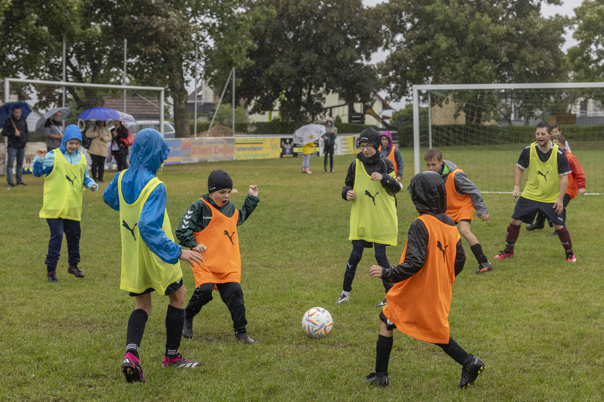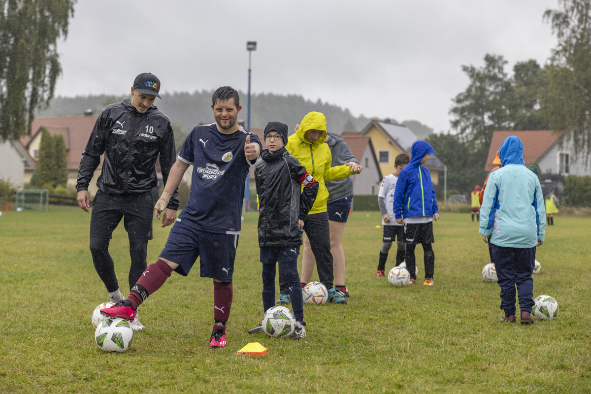 Diese Erfolgsgeschichte spornte die jungen Fußballer an und sensibilisierte sie für das Abschlussspiel am Nachmittag. Dabei spielten die Jugendlichen zusammen mit Ballkünstlern, die eine körperliche beziehungsweise geistige Beeinträchtigung haben.