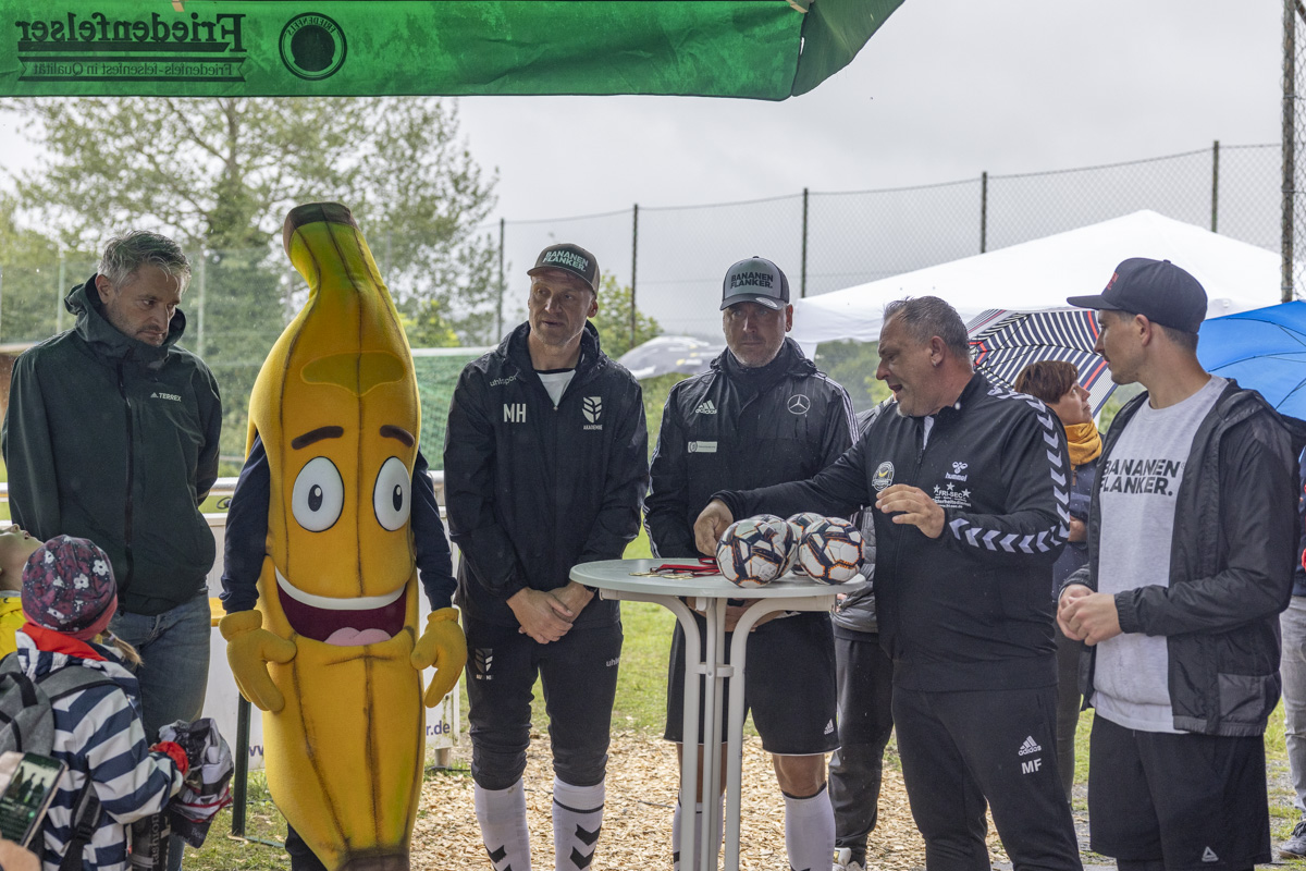 Bekannte ehemalige Fußballstars wie Jim-Patrick Müller, Torben Hoffmann und Michael Hofmann sowie der erfolgreichste deutsche Athlet bei paralympischen Spielen und 14-fache Weltmeister, Gerd Schönfelder, waren beim Feriencamp der Bananenflanker Legenden mit von der Partie. Zusammen bewiesen sie den über 50 Nachwuchskickern, dass Fußball wirklich keine Grenzen kennt.