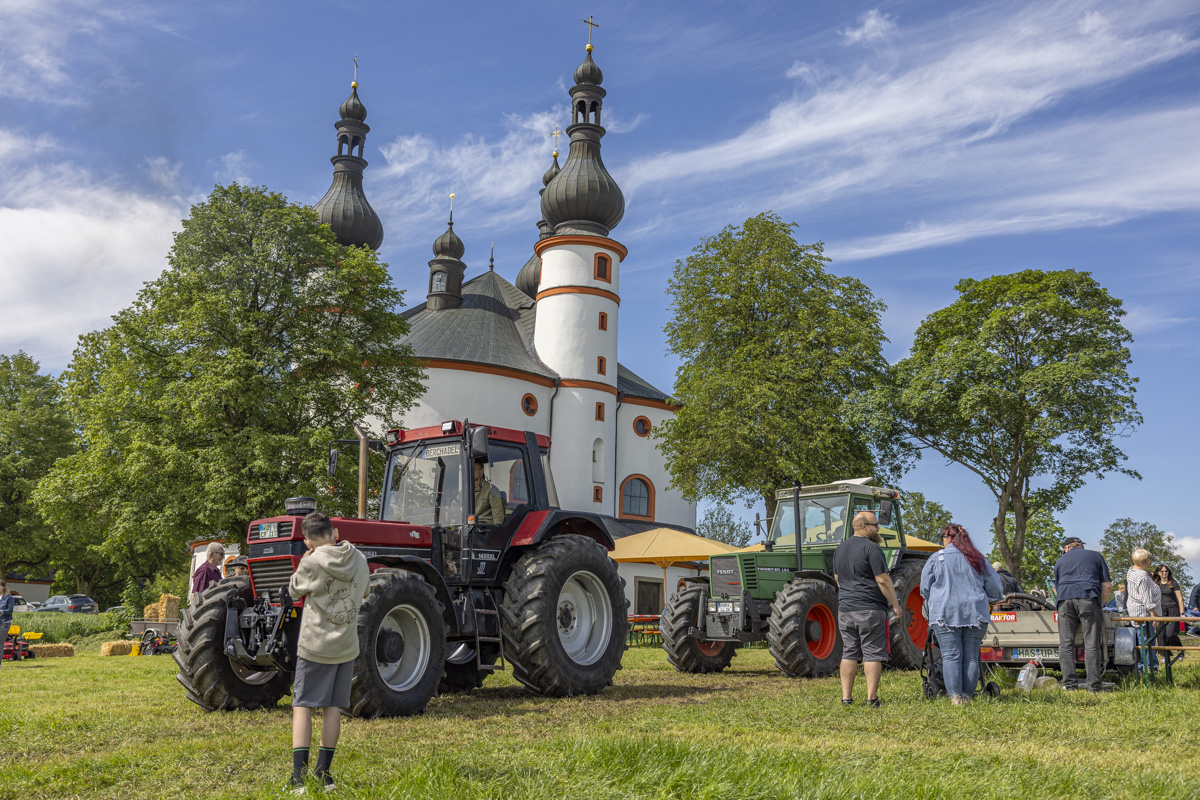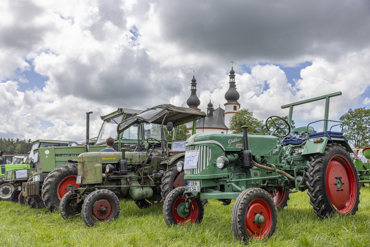 Der „Oldtimer Bulldog Stammtisch Münchenreuth“ hatte für den Sonntag wahrlich nicht zu viel versprochen. Schon ab 9 Uhr rollten die ersten historischen Traktoren zur Dreifaltigkeitskirche. Bis zum Mittag war der Fuhrpark auf gut 200 Bulldogs, Lastenwagen und Erntemaschinen angewachsen. Die Besucher konnten also reichlich landwirtschaftliche Raritäten bestaunen, beim Marktbetrieb auf Schnäppchensuche gehen oder sich einfach das Festbier und ein paar Bratwürste vom Grill schmecken lassen.