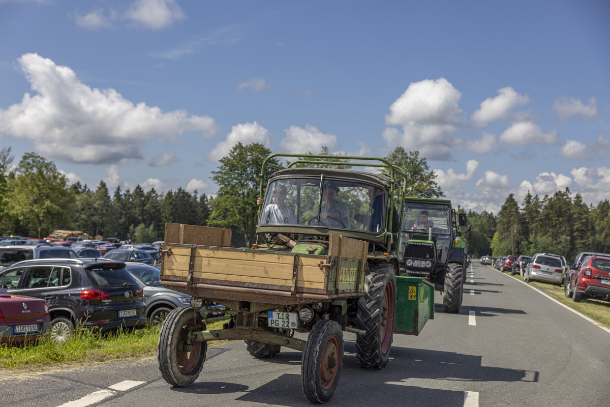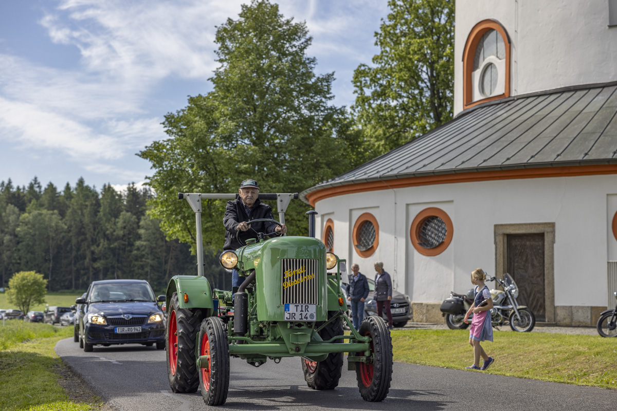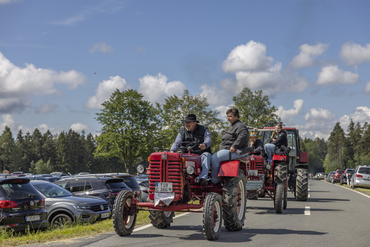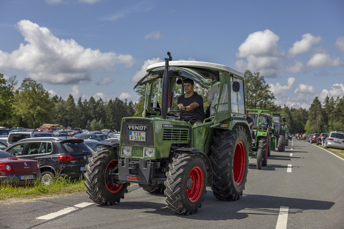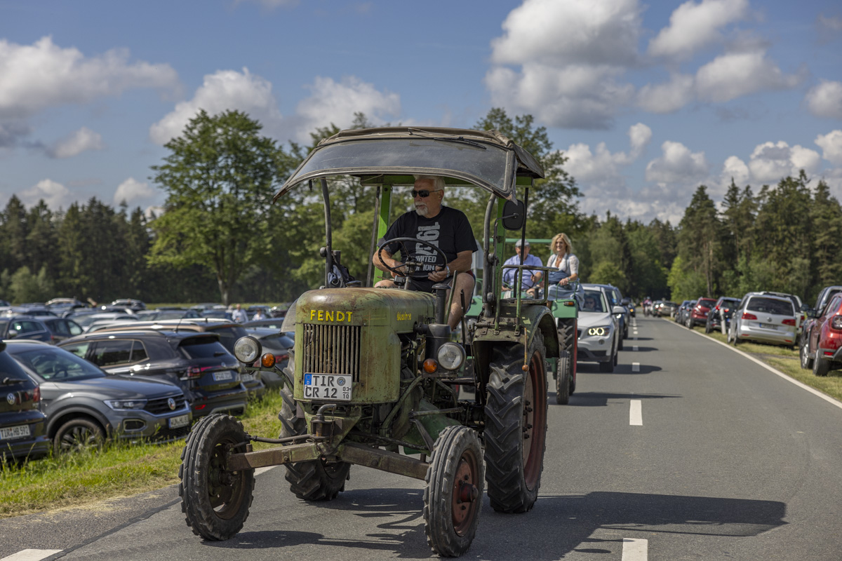 Obwohl die Veranstalter schon beim sonnigen Wetter himmlische Unterstützung hatten, holten sie sich auch für ihre große Ausfahrt göttlichen Beistand ab. Pfarrvikar Gerald Obumneke Nwenyi aus Nigeria segnete die historischen Maschinen und deren Fahrerinnen und Fahrer. Die Ausfahrt war für die Teilnehmer, die teils sehr weite Anreisen auf sich genommen hatten, ein absolutes Highlight. So tuckerten Fahrzeuge aus ganz Deutschland und Tschechien unter weiß-blauem Himmel durch die Oberpfalz.