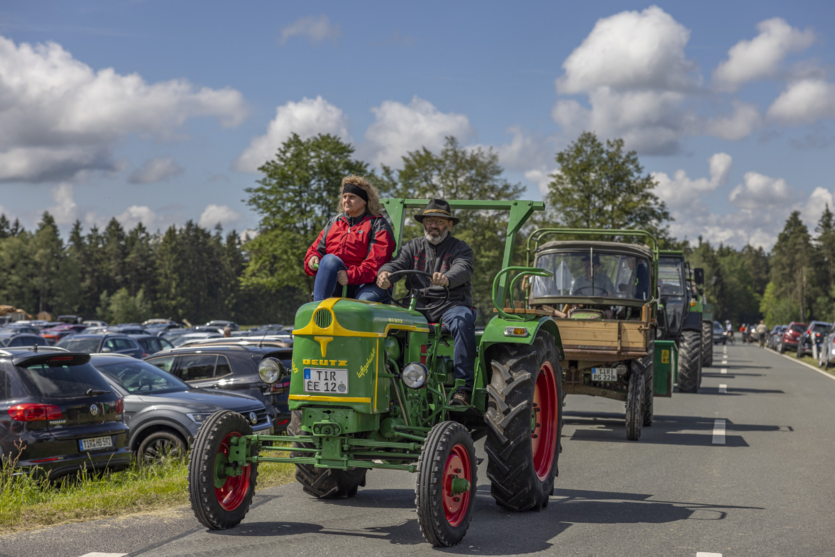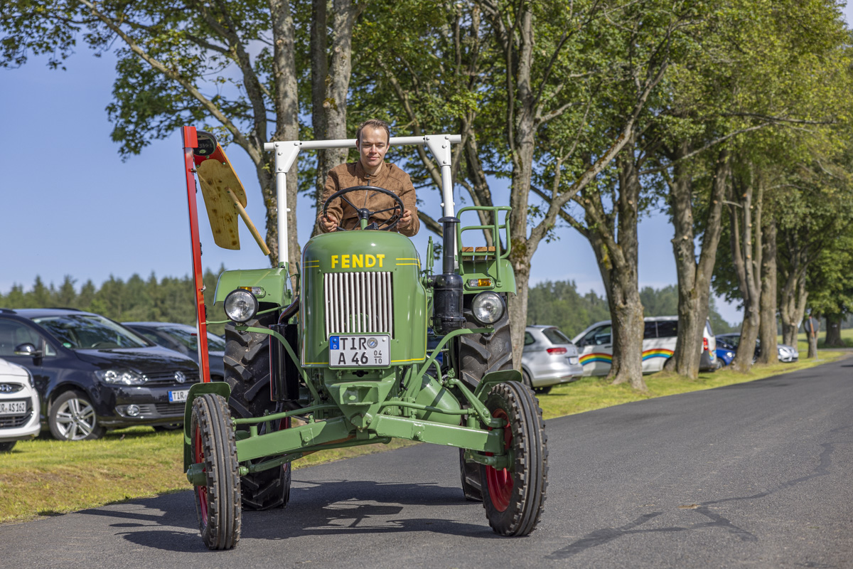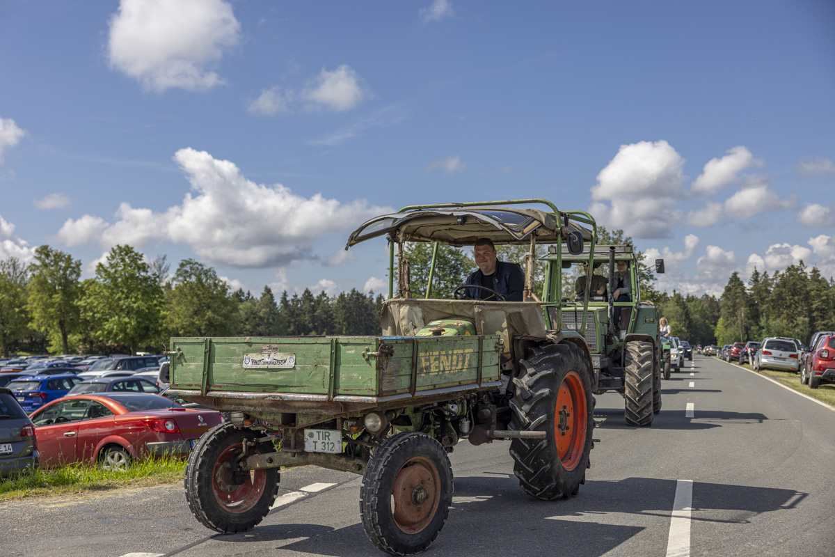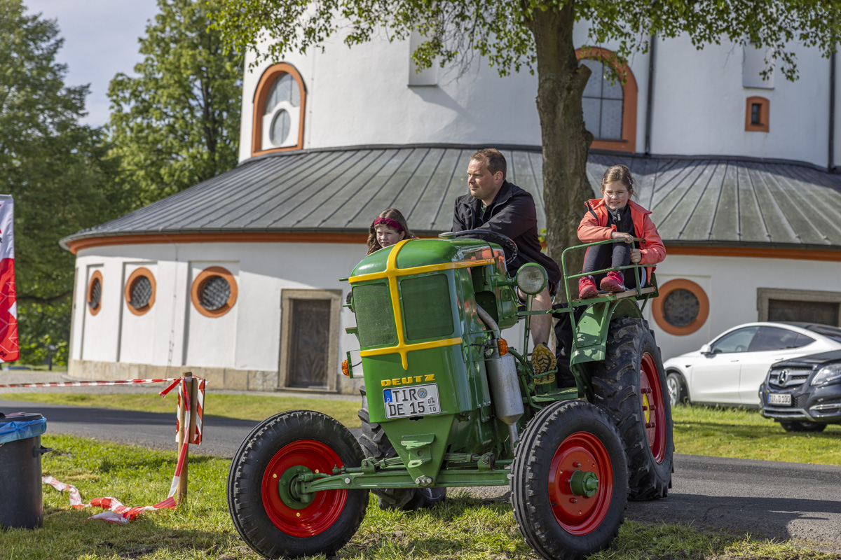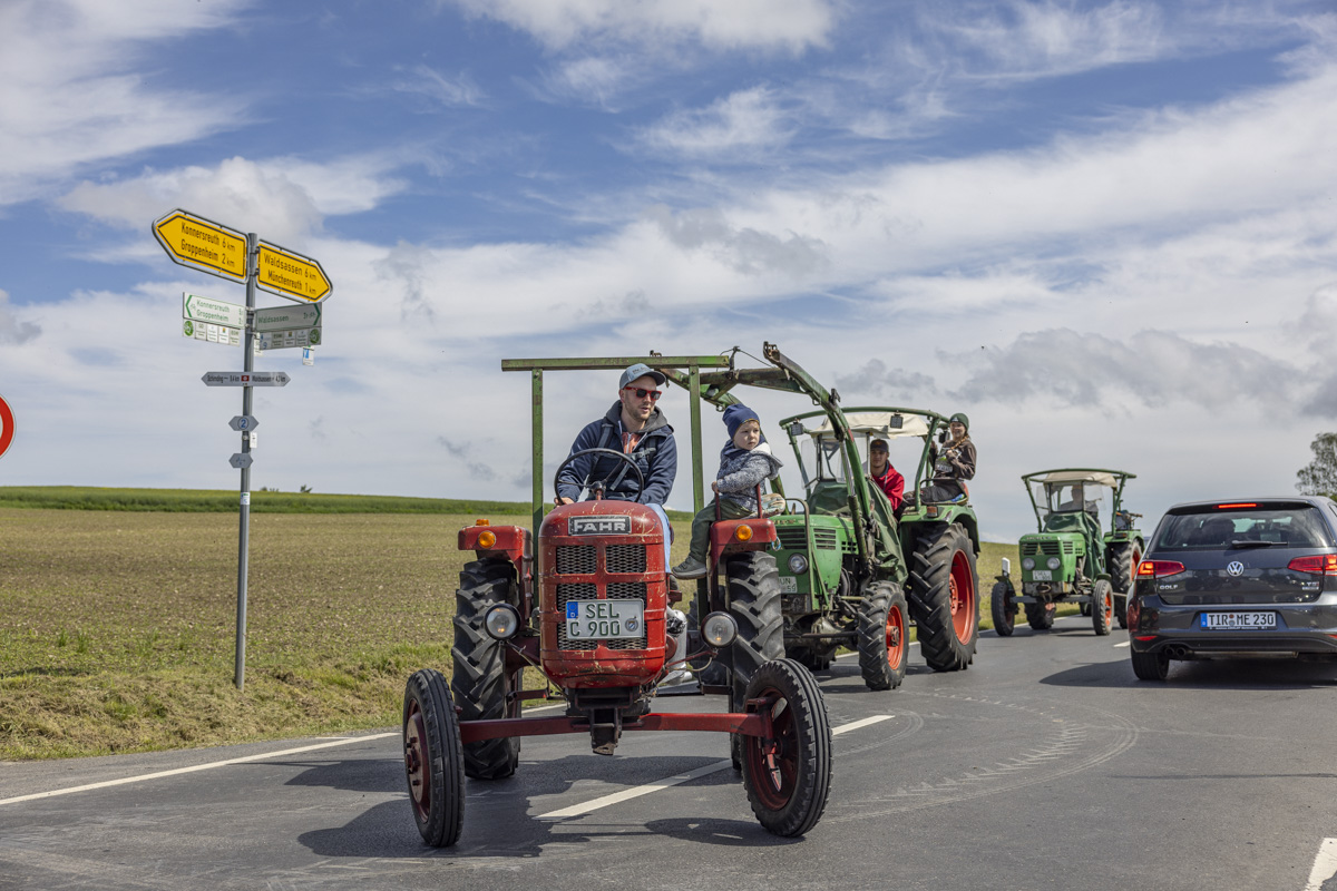 Obwohl die Veranstalter schon beim sonnigen Wetter himmlische Unterstützung hatten, holten sie sich auch für ihre große Ausfahrt göttlichen Beistand ab. Pfarrvikar Gerald Obumneke Nwenyi aus Nigeria segnete die historischen Maschinen und deren Fahrerinnen und Fahrer. Die Ausfahrt war für die Teilnehmer, die teils sehr weite Anreisen auf sich genommen hatten, ein absolutes Highlight. So tuckerten Fahrzeuge aus ganz Deutschland und Tschechien unter weiß-blauem Himmel durch die Oberpfalz.