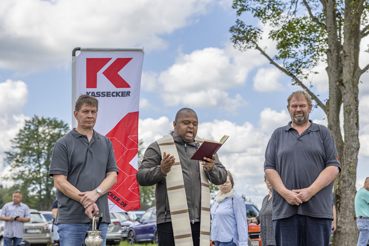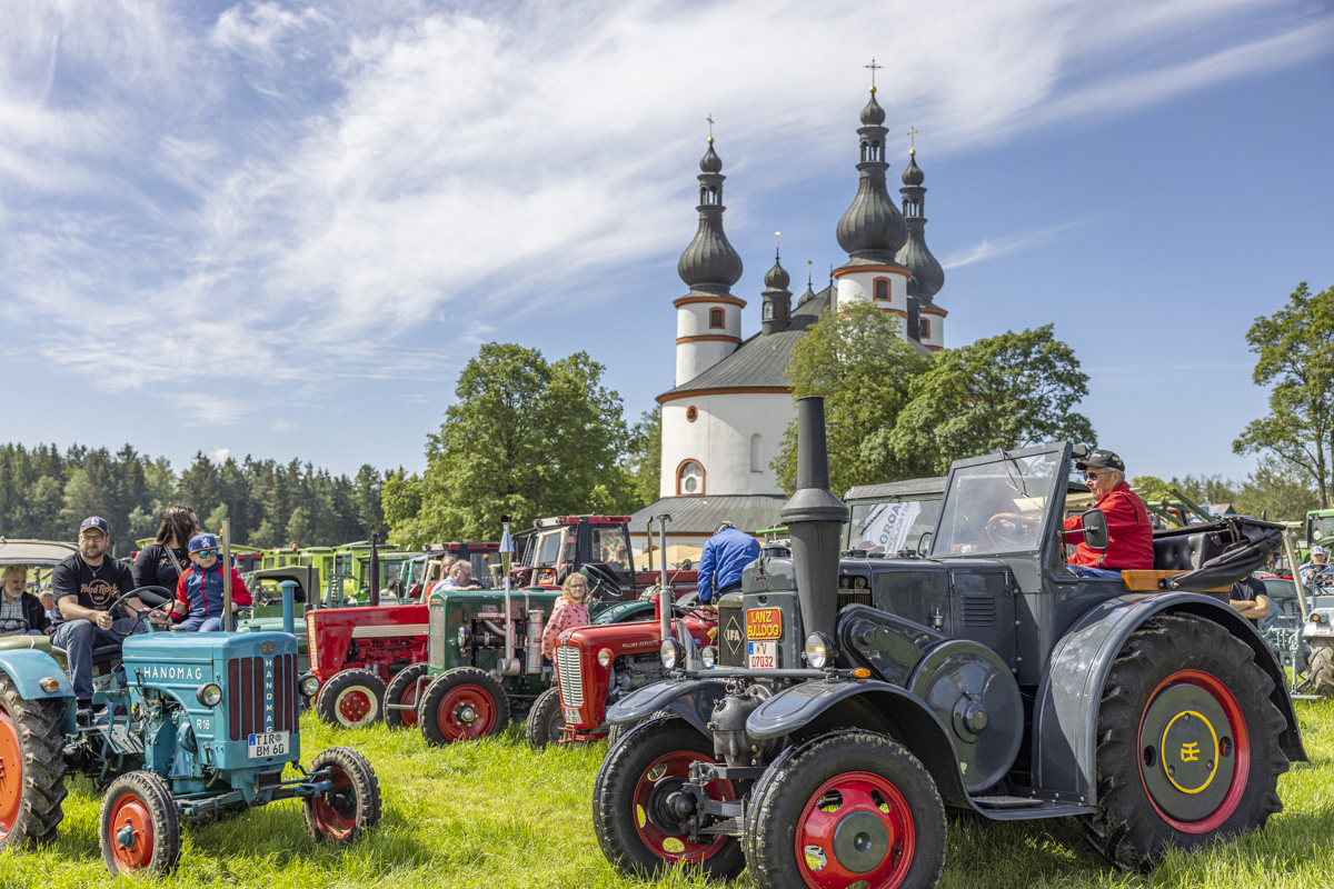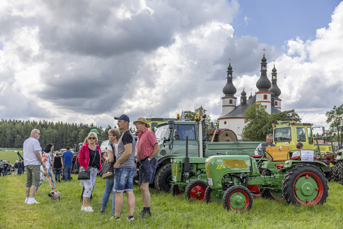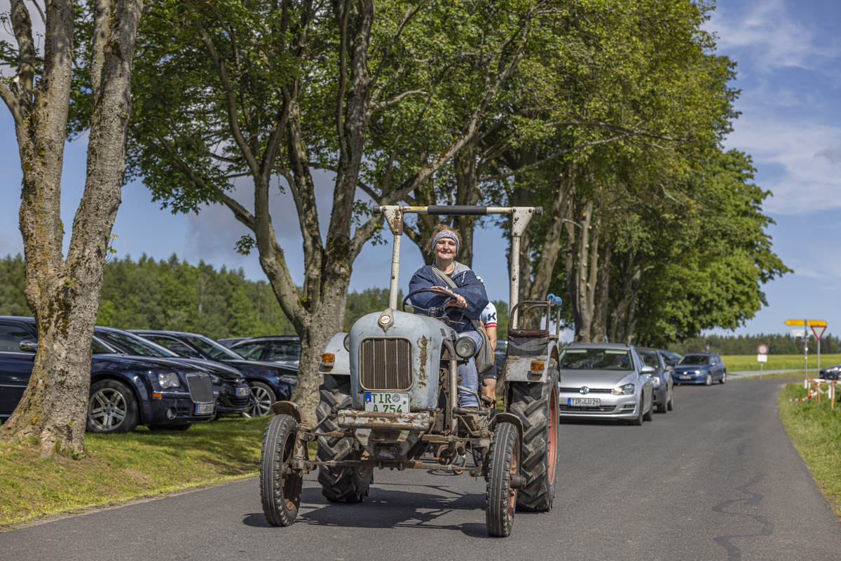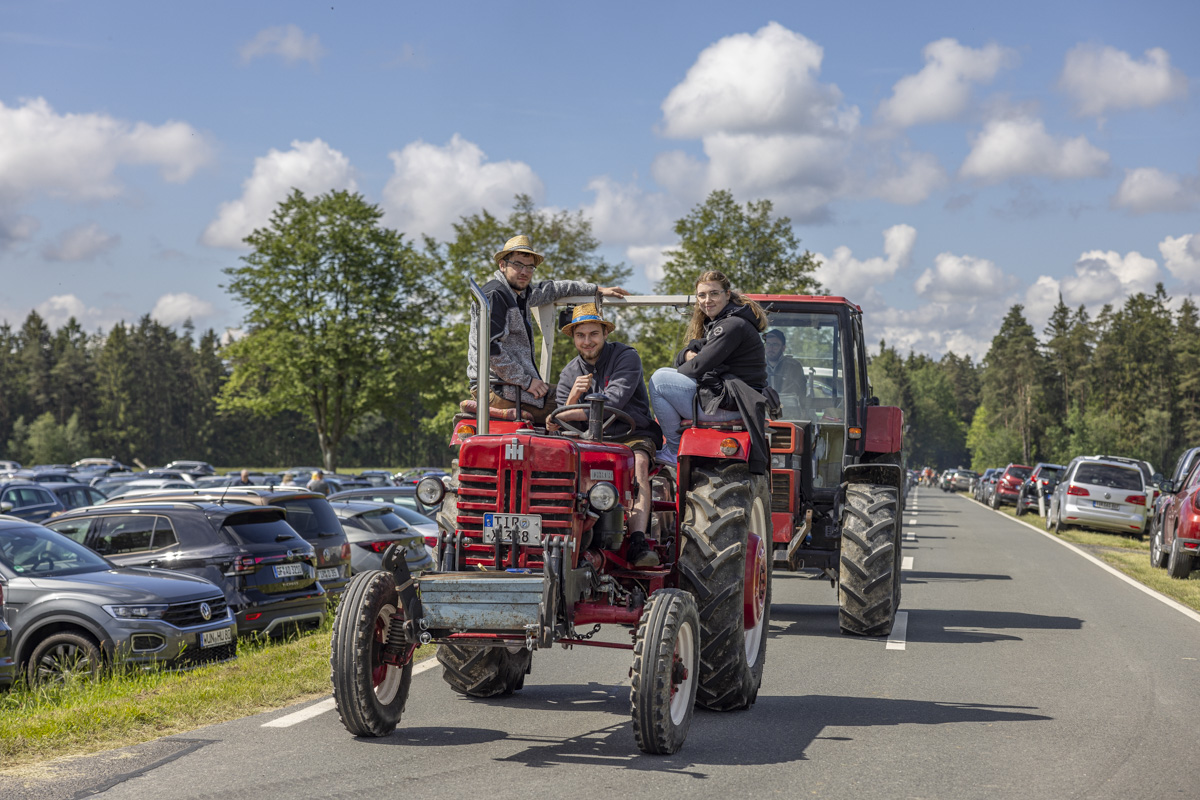 Obwohl die Veranstalter schon beim sonnigen Wetter himmlische Unterstützung hatten, holten sie sich auch für ihre große Ausfahrt göttlichen Beistand ab. Pfarrvikar Gerald Obumneke Nwenyi aus Nigeria segnete die historischen Maschinen und deren Fahrerinnen und Fahrer. Die Ausfahrt war für die Teilnehmer, die teils sehr weite Anreisen auf sich genommen hatten, ein absolutes Highlight. So tuckerten Fahrzeuge aus ganz Deutschland und Tschechien unter weiß-blauem Himmel durch die Oberpfalz.