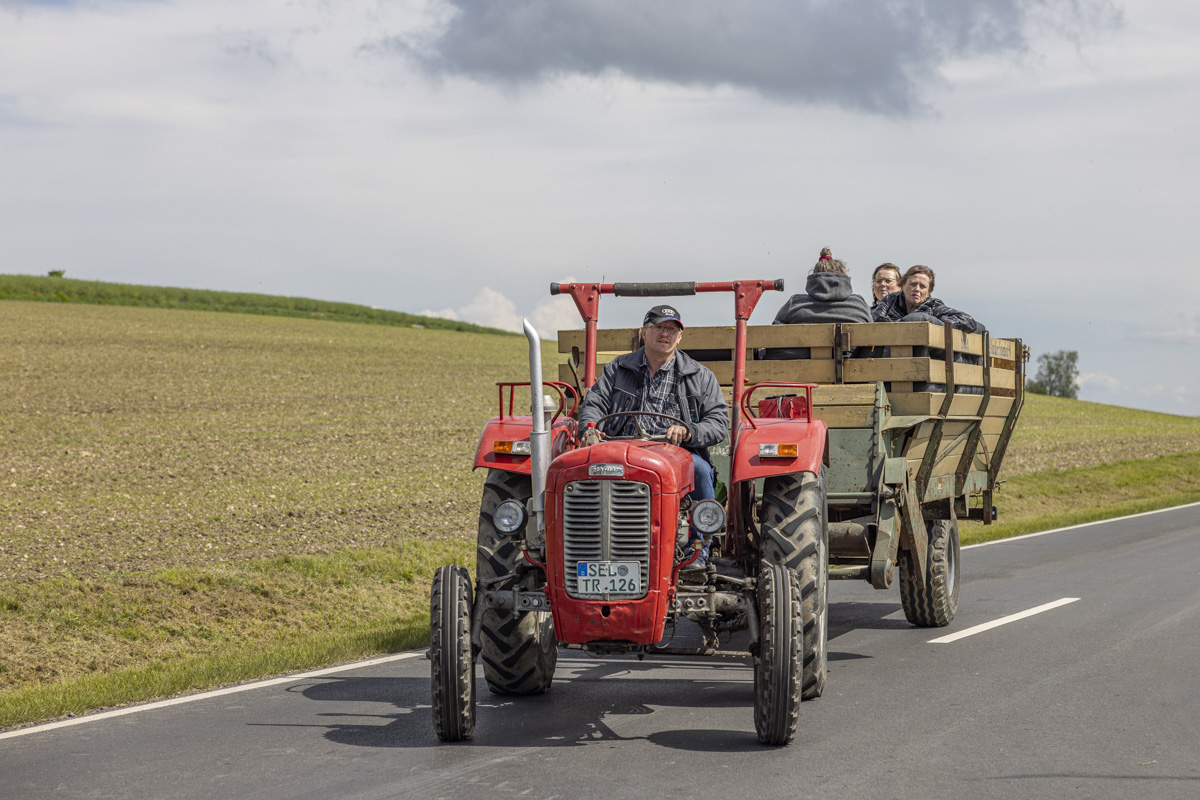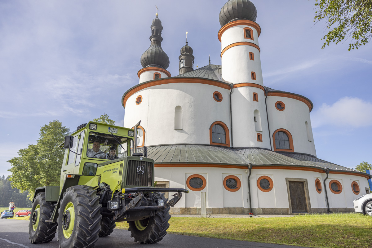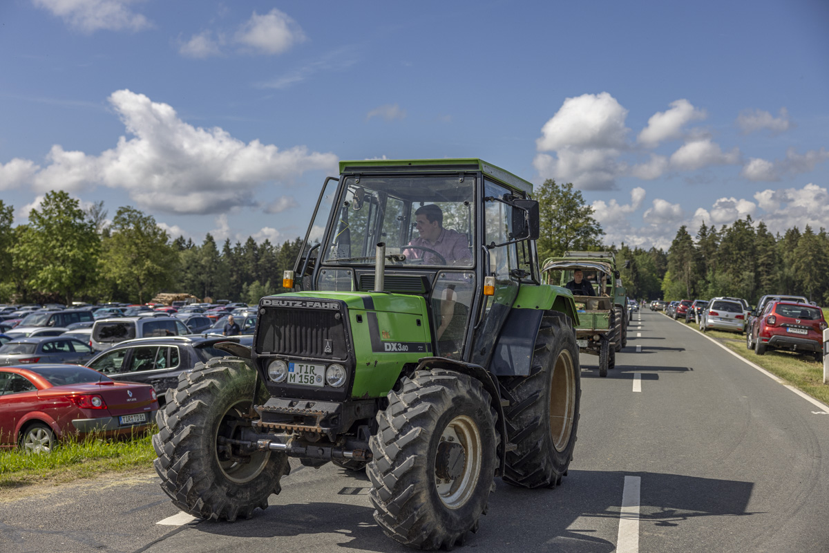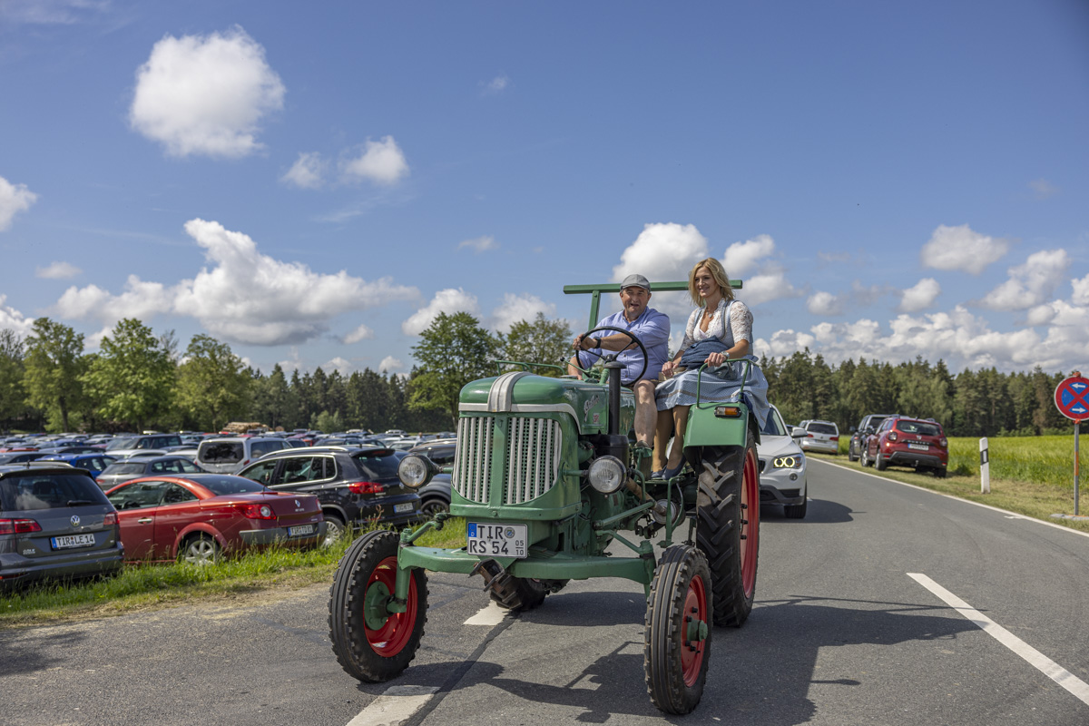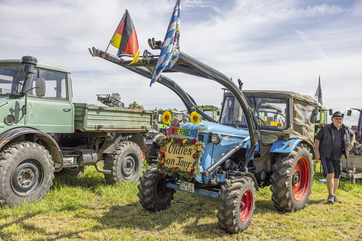 Obwohl die Veranstalter schon beim sonnigen Wetter himmlische Unterstützung hatten, holten sie sich auch für ihre große Ausfahrt göttlichen Beistand ab. Pfarrvikar Gerald Obumneke Nwenyi aus Nigeria segnete die historischen Maschinen und deren Fahrerinnen und Fahrer. Die Ausfahrt war für die Teilnehmer, die teils sehr weite Anreisen auf sich genommen hatten, ein absolutes Highlight. So tuckerten Fahrzeuge aus ganz Deutschland und Tschechien unter weiß-blauem Himmel durch die Oberpfalz.