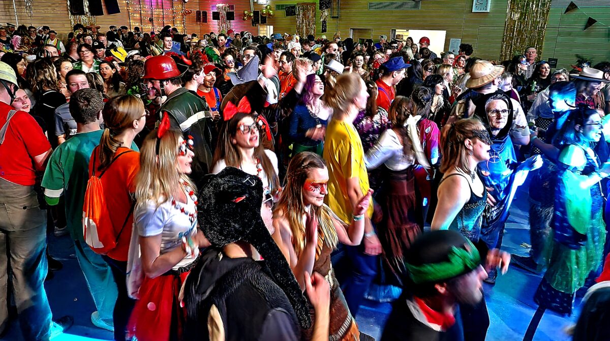 Nach einem rockigen Einsatz der Band mit Songs aus den 90ern wie „Sex on fire“ oder „Summer of 69“ hieß es erneut: Bühne frei für das Männerballett „Büffelwasser“. Für das Einstudieren war wie immer Franziska Schönberger verantwortlich. Die Jungs zeigten in einem kuriosen Mix auf der Bühne Hip-Hop und eine Parodie auf die Fußball-WM in Qatar. Dabei warfen sie auch mit frischgedruckten Euroscheinen um sich. Dann übernahm die Band wieder das abwechslungsreiche Programm bis spät nach Mitternacht mit „Schrei nach Liebe“ von den Ärzten und „American Idiot“ von Green Day als Zugabe.