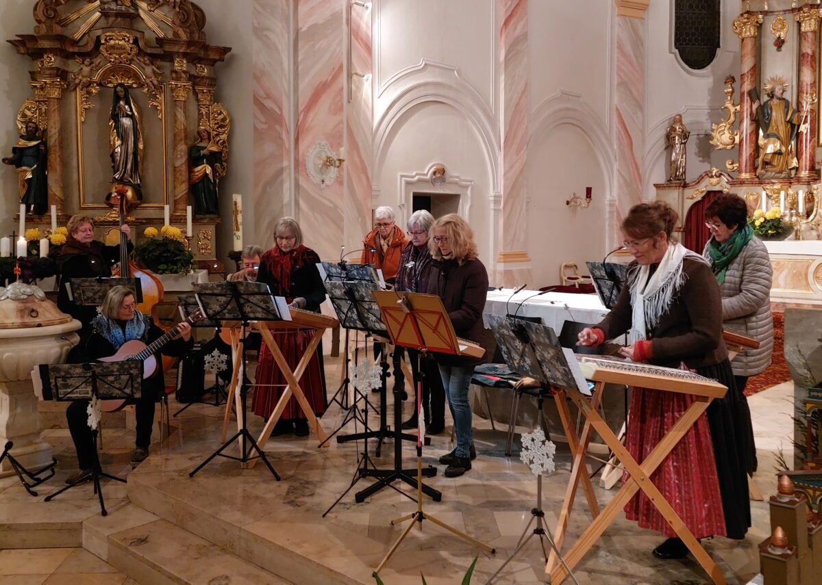 Das Musikstück „Es herbstlt“, bei dem Akkordeonspieler Hermann Lang die Führungsrolle übernahm, läutete den musikalischen Reigen ein. Bleibt’s „Schöi staad“ vermittelte ein Musikstück, das von den Gitarristen Gunda Hermann und Hermann Lang geprägt wurde. Beim Stück „Sterndlnacht“ glaubte man, die Sterne funkeln zu sehen, die „Pastorella“ von Anton Kobrich aus dem 18. Jahrhundert zeigte sich trotz ihres Alters keineswegs altmodisch. Sogar eine eigene Komposition war Teil des Programms, Irene und Hermann Lang hatten für die Weihnachtswünsche selbst getextet und die Melodie geschrieben. Einige weitere Musikstücke rundeten die harmonische Aufführung ab.