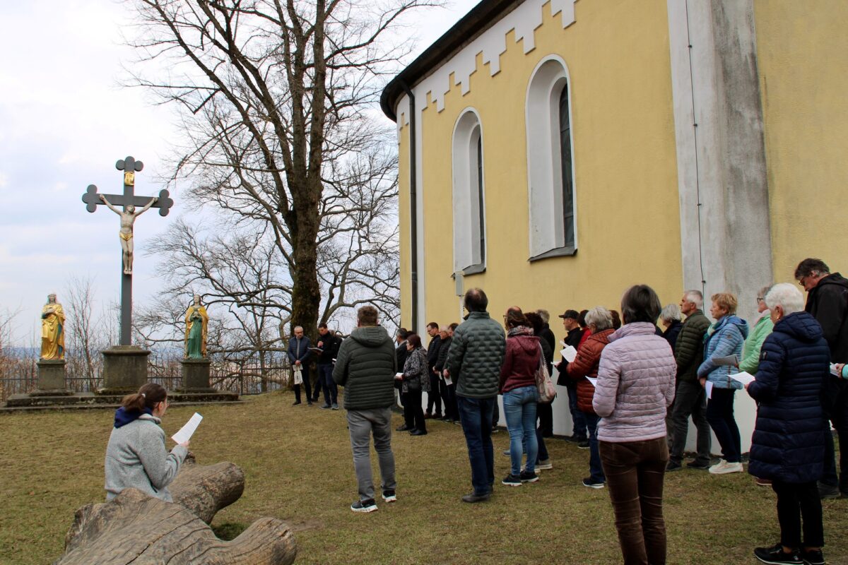 Die Teilnehmer machten sich auf den Weg zur malerisch gelegenen Bergkirche. Sie folgten dem Kreuzweg, um gemeinsam zu beten und zu meditieren. Die Andacht beinhaltete 14 Stationen. An jeder Station wurde das Leiden und die Hingabe Jesu betrachtet. Diese Momente wurden von Gebeten und besinnlichen Texten begleitet.