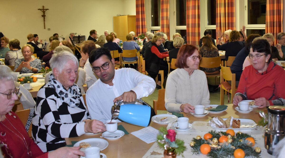 Nachdem die Mitglieder des Frauenbundes und die Senioren Stollen, Nusskuchen und Weihnachtspunsch genießen konnten, klopfte der Nikolaus (Willi Dötsch) an die Tür. Dieser sagte: „Ich kann nur Gutes von euch lesen und brauche deshalb keine Rute und keinen Besen…“