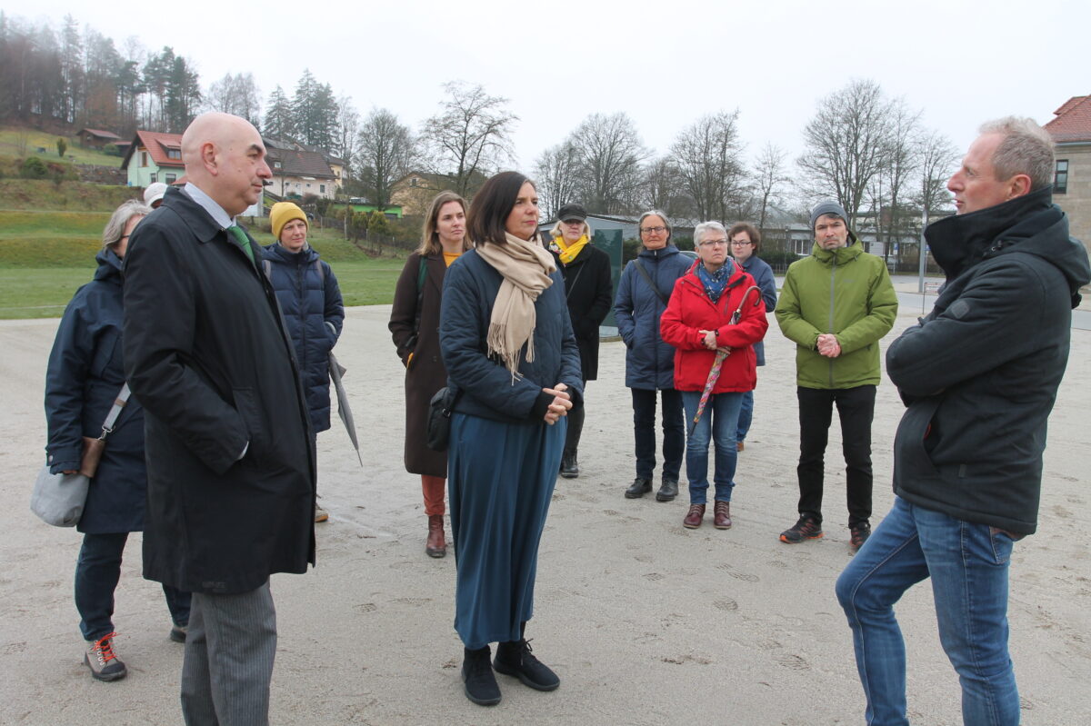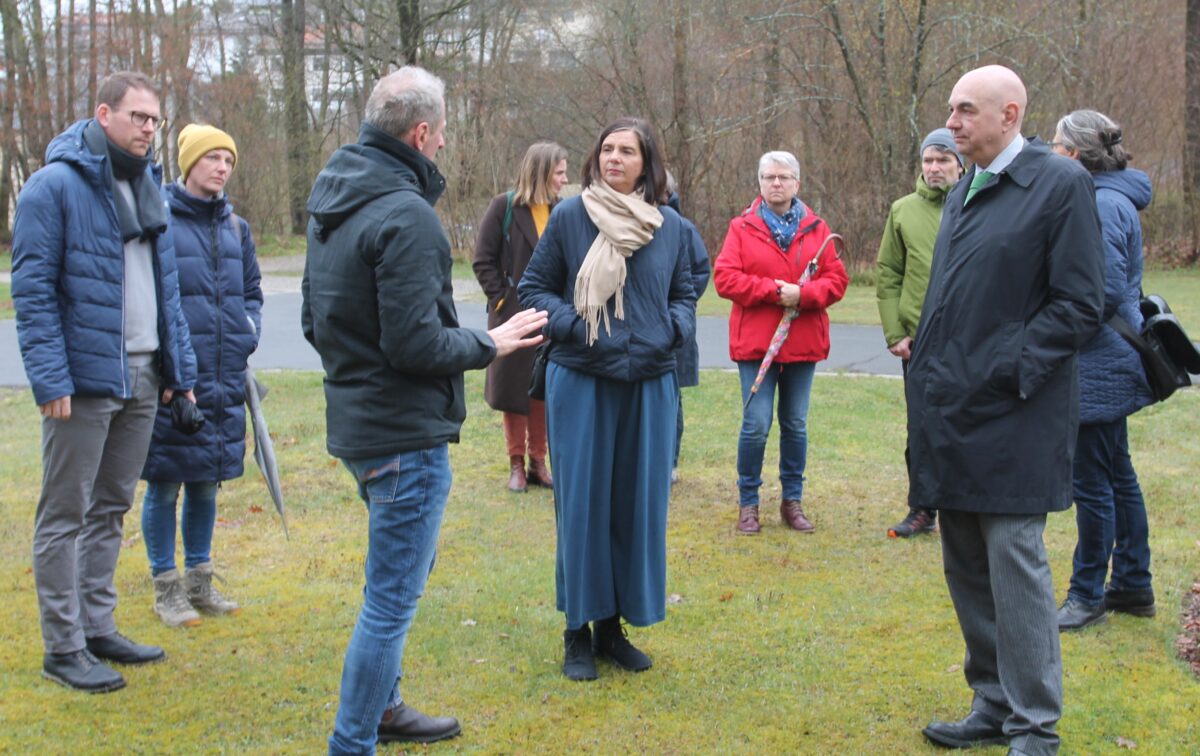 Göring-Eckardt, in Begleitung des Landtagsabgeordneten Jürgen Mistol, der Grünen-Kreisvorsitzenden und Weidener Stadträtin Laura Weber sowie Vertreter der Grünen-Kreisverbände Neustadt/WN, Tirschenreuth und Weiden, ist im Rahmen ihrer Rundreise durch die Oberpfalz am 15. April zum ersten Mal in der Flossenbürger Gedenkstätte. Beeindruckt zeigte sie sich von den umfassenden Schilderungen Skriebeleits sowie den Ausführungen von Christa Schikorra, Leiterin der Bildungsabteilung.