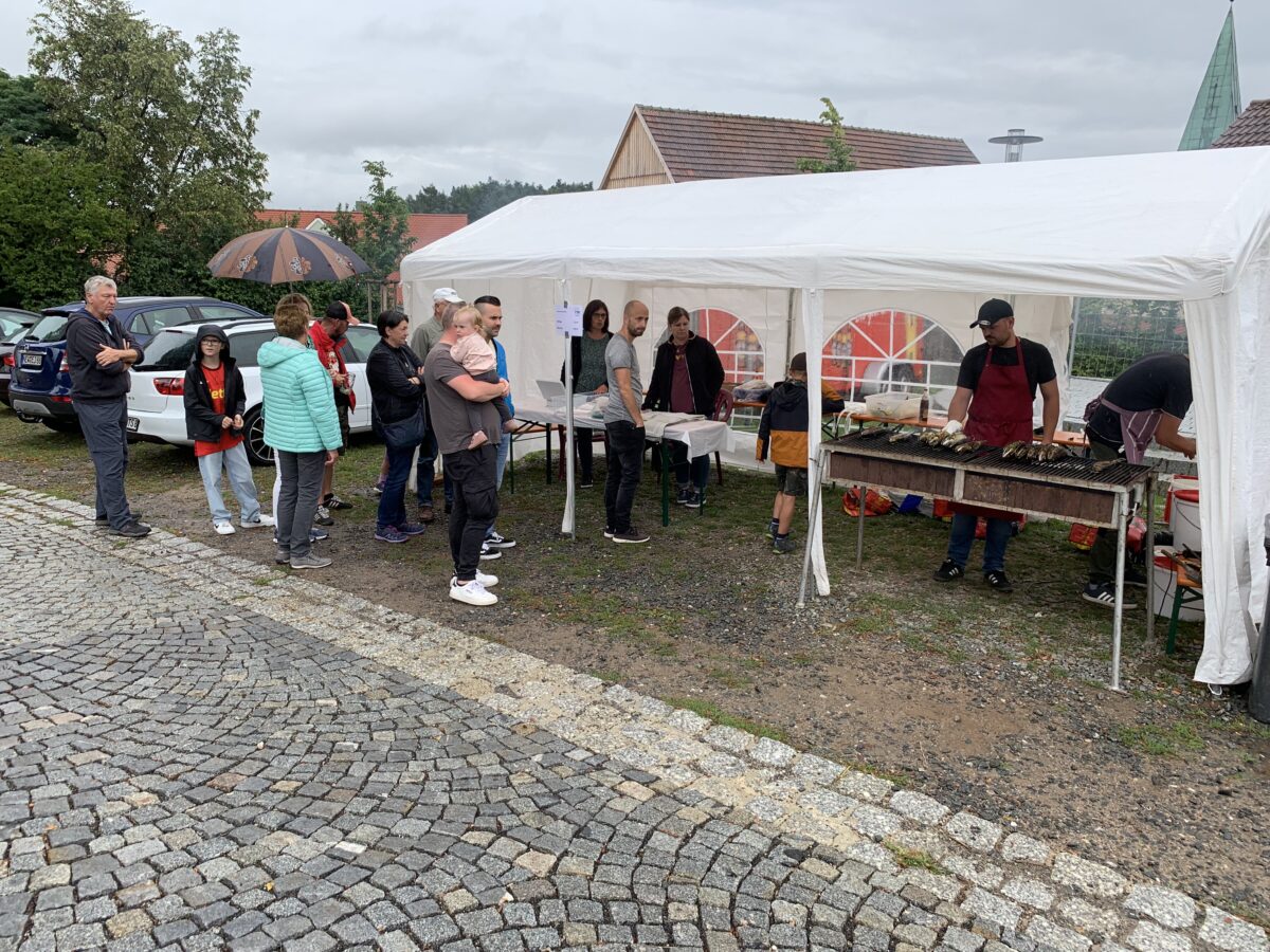 Ein kleines aber feines Fest erlebten die Besucher des Schlossbergfest der Freien Wähler Störnstein. Die Verantwortlichen verlegten das Fest, wegen der angesagten widrigen Wetterbedingungen, kurzerhand in die Kulturscheune. Den ganzen Nachmittag kamen die Besucher, dem Wetter angepasst, „tröpfchenweise“. Die familienfreundlichen Preise luden zum Essen und Trinken ein. Die meisten angebotenen Speisen, wie Kaffee und Kuchen, warmen Leberkäs, Bratwürste, „Schlossberg-Burger“, Käse und Brezen verkauften die Helfer. Der Stand an dem es gegrillte Makrelen und Heringen gab, war gut frequentiert. Für die musikalische Unterhaltung sorgt „DJ“ Manfred Kurz. Vorsitzender Johann Confal zeigt sich angesichts des miesen Wetters mit dem Besuch zufrieden.