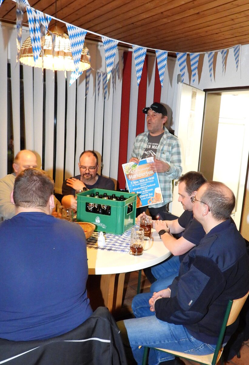 Nach den Ausführungen Meiers wurde der Rötzer Ur-Bock im Oktober 2025 eingebraut und enthält circa 8,0 % vol. Alkohol. Das bestens gelungene Getränk fand allseits die Zustimmung der anwesenden Feuerwehrleute.
