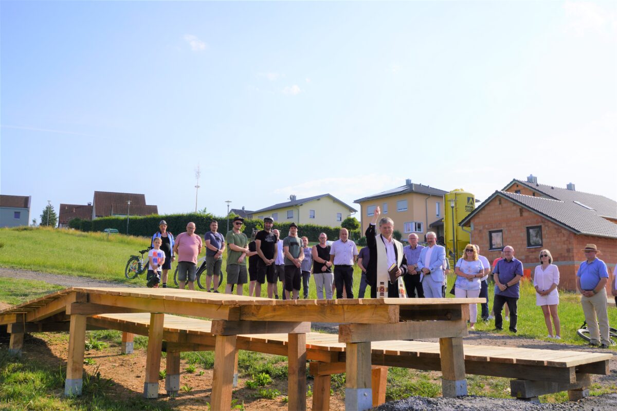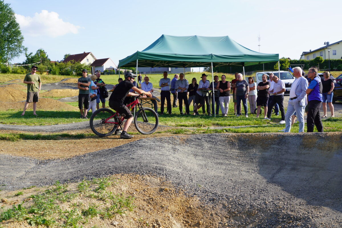Dies sagte der Erbauer und Planer des Pumptrack und Dirtparks, Robert Rieder von der Bike Time GmbH in Treuchtlingen. Am vergangenen Dienstagabend haben die Verantwortlichen um Zweiten Bürgermeister Roman Bauer zusammen mit Pfarrer Norbert Götz die Anlage offiziell eröffnet und der Geistliche segnete sie.