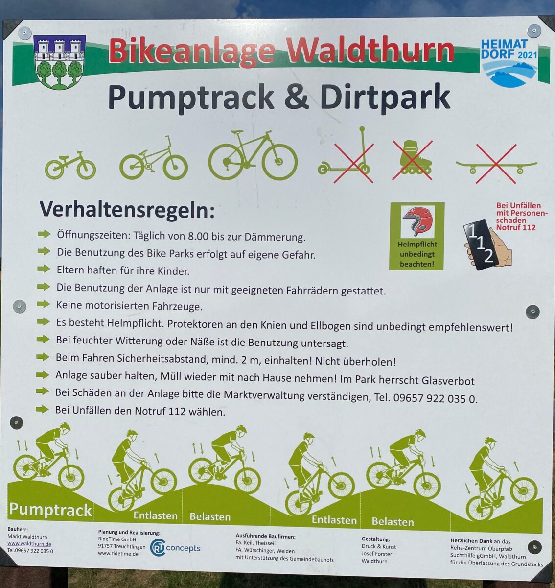 Mit dabei die beiden Initiatoren und Radsportbegeisterten Max Sollfrank aus Waldthurn und Michael Tiegs aus Vohenstrauß. „Dies ist eine Anlage für die ganze Familie, hier kann man seine Freizeit gestalten und sich so an der Freizeitanlage am Badeweiher sportlich betätigen oder auch nur lässig die Anlage befahren“, erklärte Sollfrank. „Wir haben die Anliegen vieler junger Waldthurner Radbegeisterter erfüllt und sind stolz darauf, dass beim Bau der Anlage alles so gut geklappt hat“, sagte Bürgermeister Bauer.