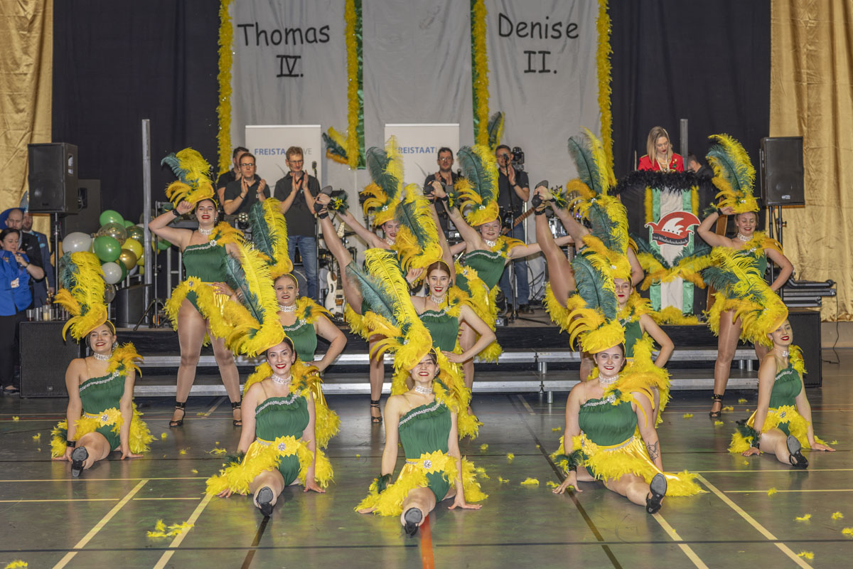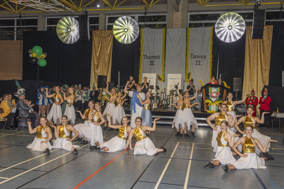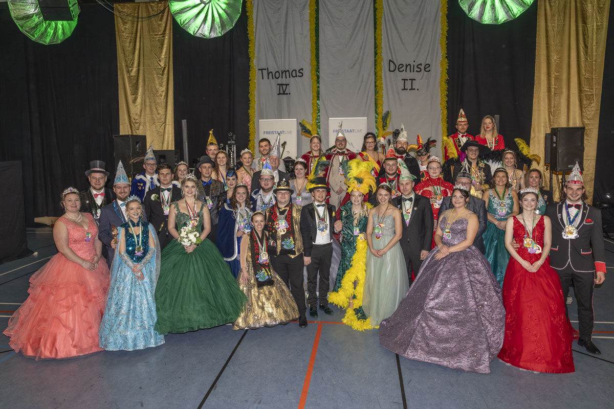 Die festliche Veranstaltung bot nicht nur Tanz und Unterhaltung, sondern auch kulinarische Köstlichkeiten. Die Gäste konnten zur Musik der Band “Freistaat Live” eine heiße Sohle aufs Bankett legen, während sie sich an den charmanten Prinzenpaaren erfreuten. Zwischen den Tanzeinlagen blieb genügend Raum für geselliges Beisammensein und das Knüpfen neuer Karnevalsfreundschaften.