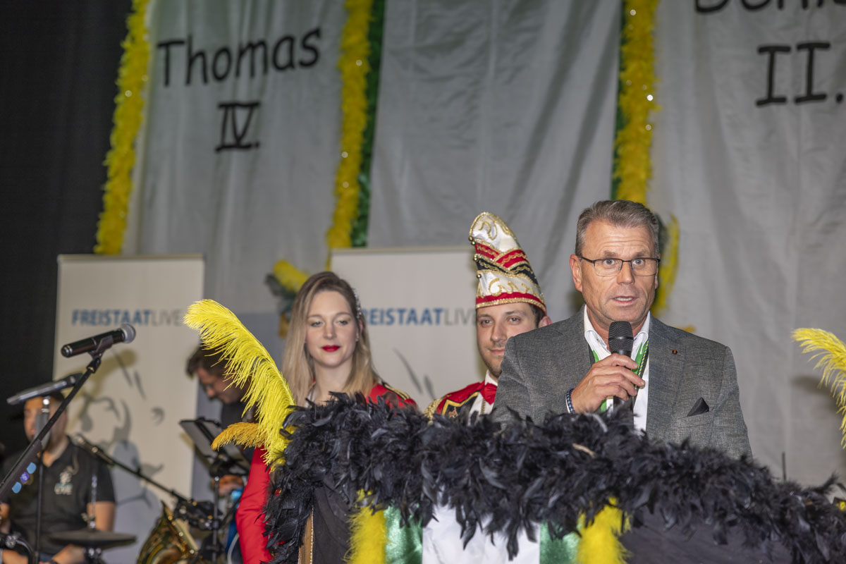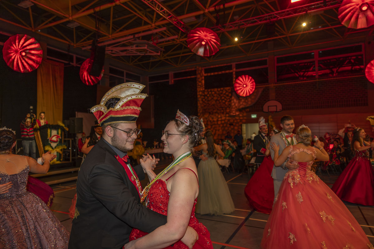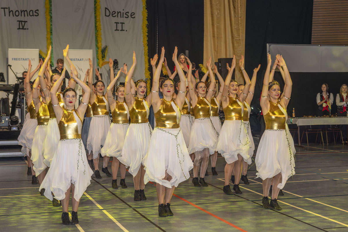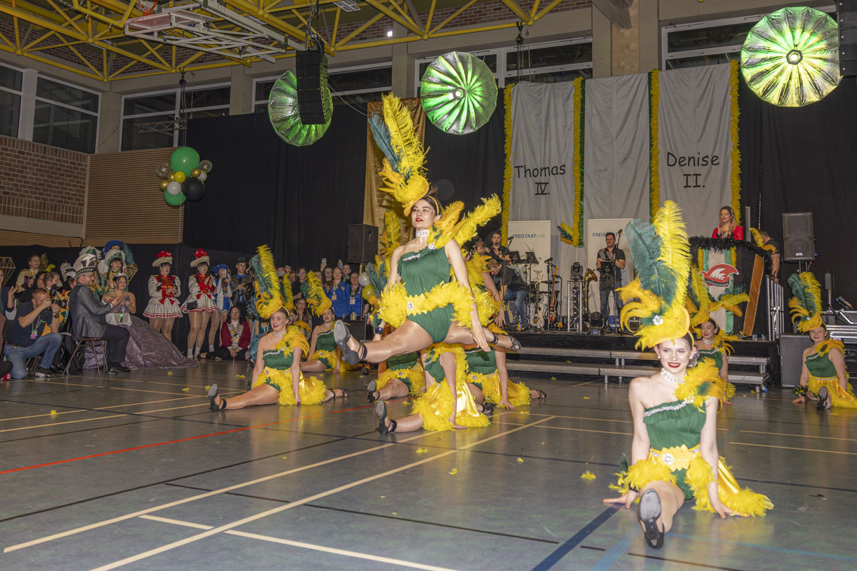 Die festliche Veranstaltung bot nicht nur Tanz und Unterhaltung, sondern auch kulinarische Köstlichkeiten. Die Gäste konnten zur Musik der Band “Freistaat Live” eine heiße Sohle aufs Bankett legen, während sie sich an den charmanten Prinzenpaaren erfreuten. Zwischen den Tanzeinlagen blieb genügend Raum für geselliges Beisammensein und das Knüpfen neuer Karnevalsfreundschaften.