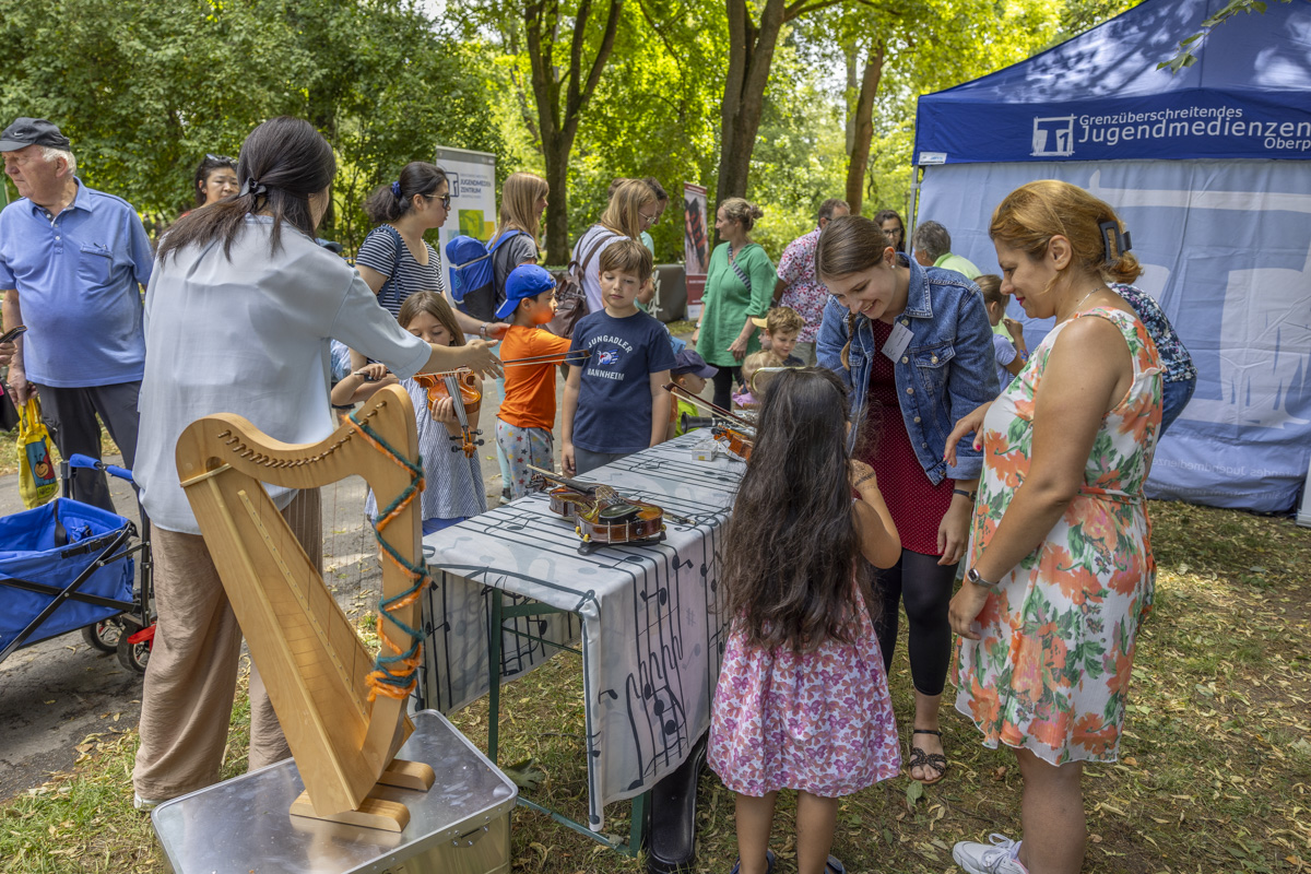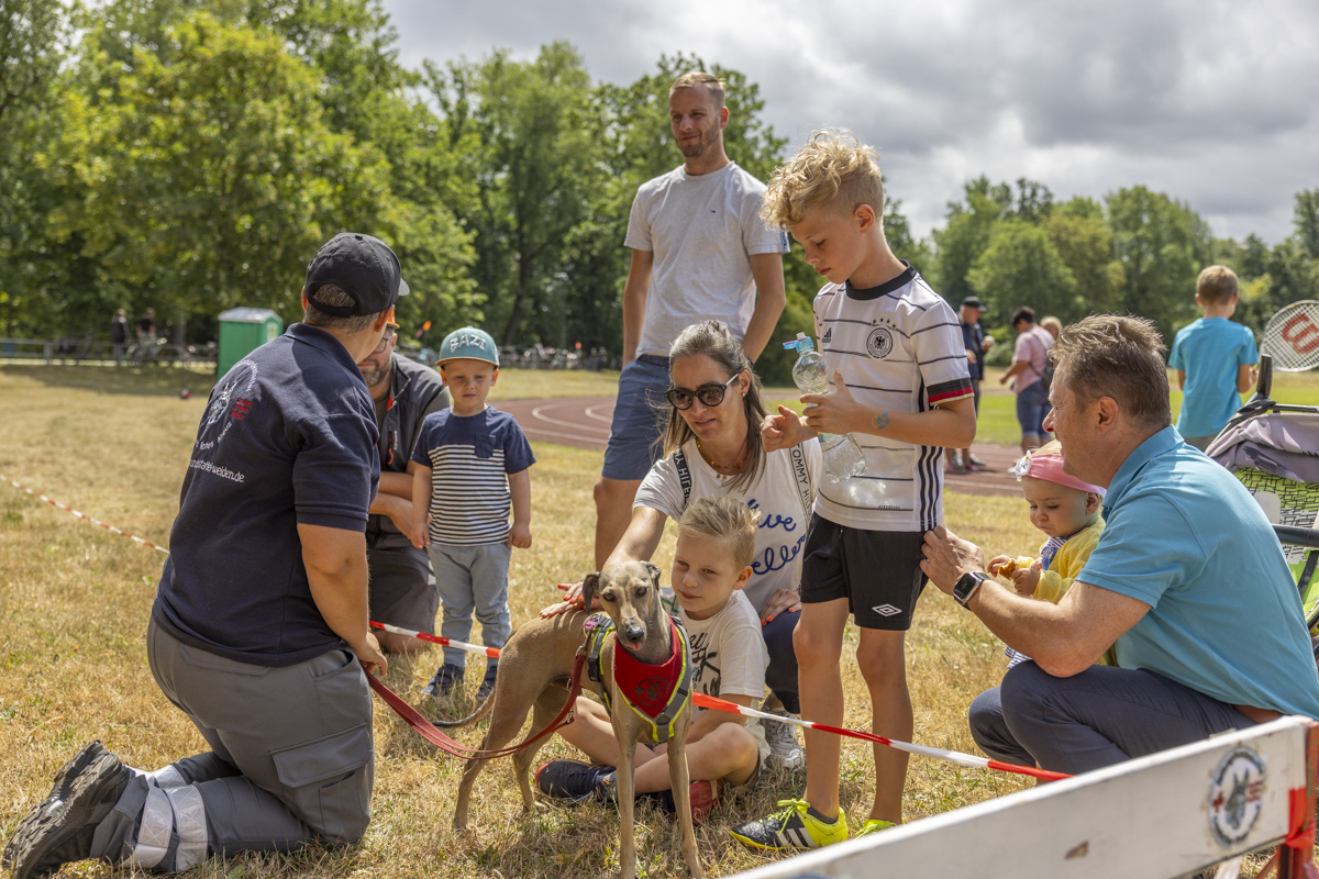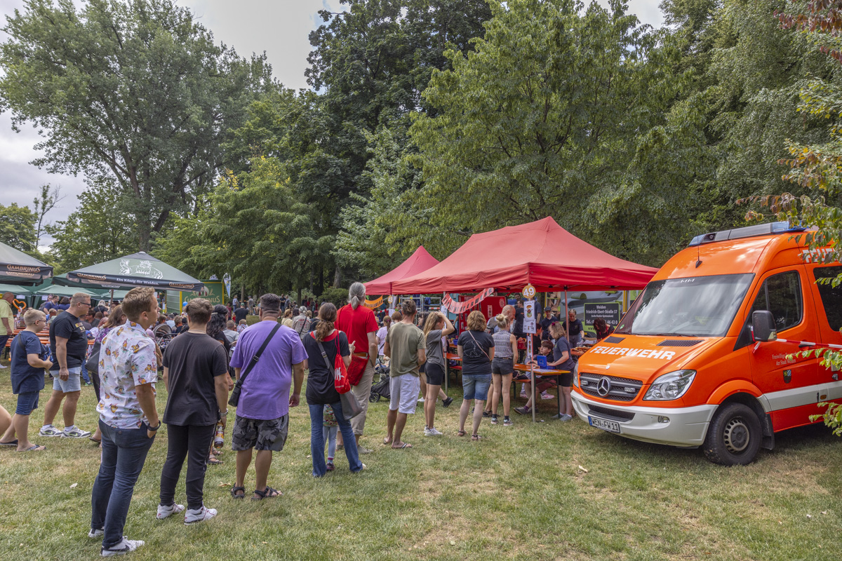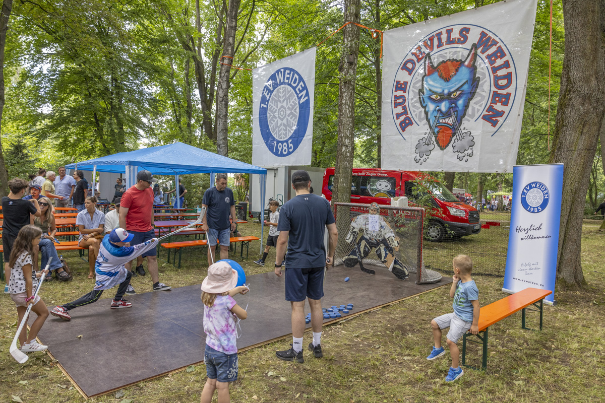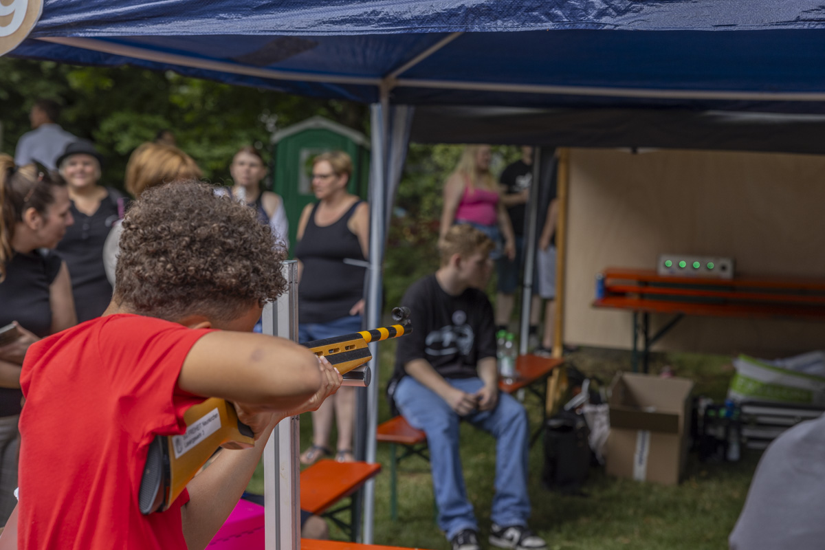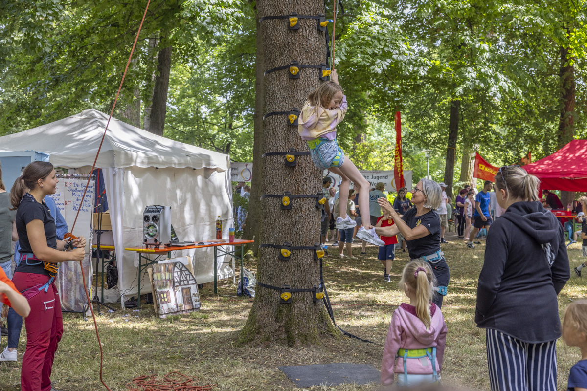 “Ich freue mich wieder riesig auf das Kinderbürgerfest, denn es ist das schönste Fest für Familien in der Region”, sagte Oberbürgermeister Jens Meyer vor dem Veranstaltungsstart am Sonntag. Und er hatte gewiss nicht zu viel versprochen: Viele Vereine und Jugendgruppen hatten sich an diesem Tag kräftig ins Zeug gelegt und ein fantastisches Programm für Kinder, Jugendliche, aber auch für die Eltern auf die Beine gestellt. Die Besucher konnten den Eishockey-Puck durch die Luft schmettern, die Treffgenauigkeit mit dem Fußball beweisen oder einfach gemütlich Stockbrot backen. Außerdem war auf den Hüpfburgen, Trampolins, bei Motorboot- und Hundekutschenfahrten reichlich Action geboten.
