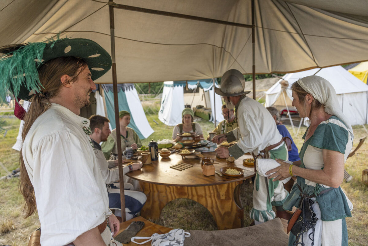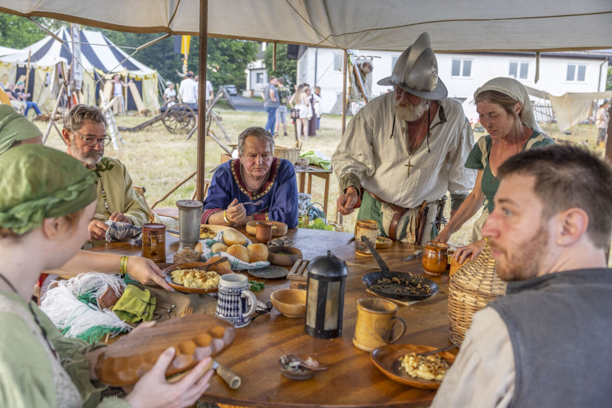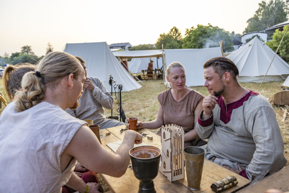 Für die meisten Teilnehmer ist der Weg zurück in vergangene Epochen mehr als nur eine Rolle. Sie genießen das Leben abseits des Trubels. An diesem Wochenende blieben die meisten Handys aus. Die Zeit wurde lieber für Handarbeit, kochen über dem offenen Feuer, gemeinsame Spiele, Turniere oder einfach das Beisammensein genutzt. Abseits des Ritterlagers war aber auch einiges geboten.
