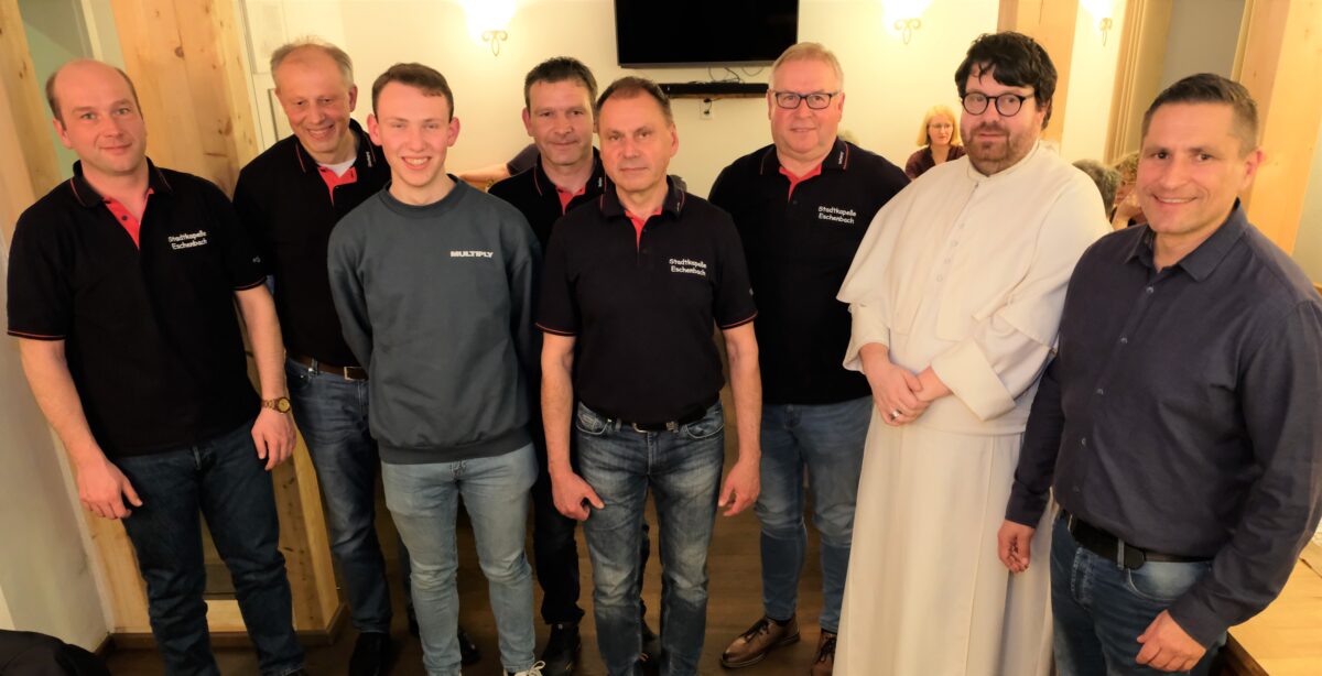 Die Blaskapelle ist ein Sprachrohr der Eschenbacher. Ob beim Bürgerfest, beim Maibaumstellen, bei der Erstkommunion, beim Bauernmarkt oder beim Empfang der Wallfahrer: Die Stadtkapelle gehört einfach dazu. Auch die Vorabendmesse in der Bergkirche bereicherte das Ensemble mit ihren Wohlklängen. Begleitet vom Beifall der Gottesdienstbesucher würdigte die einfühlsame Melodienfolge auch Stadtpfarrer Johannes Bosco.
