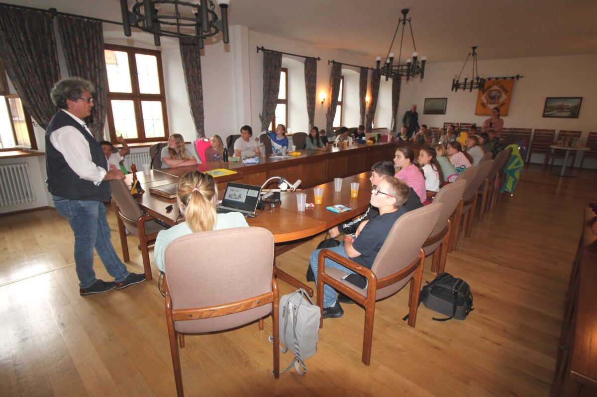 Nach der Besichtigung lud der Bürgermeister zu einer „Kinderstadtratssitzung“ im Dostlerhaus-Sitzungssaal ein, in der die Schüler Fragen stellen, ihre Meinung zu Themen wie dem Ferienprogramm oder der Modernisierung der Kinderspielplätze und des Kiesibeach-Freizeitgeländes vortragen und Vorschläge äußern konnten, die protokolliert wurden.