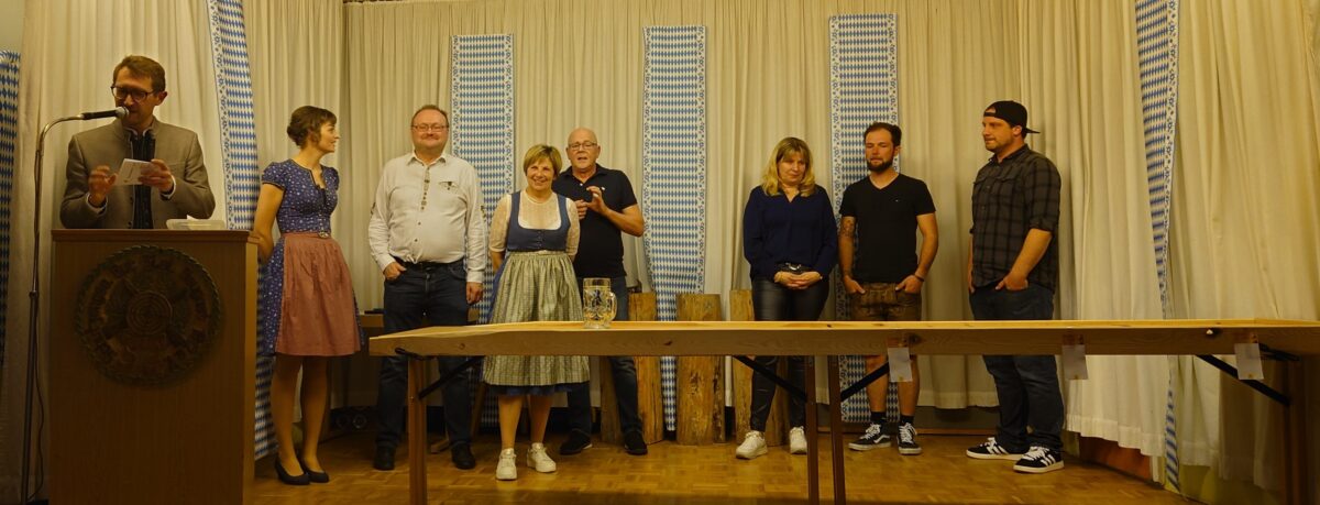 Durch den bayerischen Dreikampf moderierte Manuel Kohl die Teams des Abends. Im Maßkrugschieben, Nageln und Einschenken kämpften die Teilnehmer mit Geschicklichkeit um Bestzeiten. Für die Richtigkeit und Punktevergabe standen ihm Gaby Steiner und Edith Prösl zur Seite. LangschwanzIndianer (3 Punkte), Team Markt (6 Punkte), Die Glorreichen (6 Punkte), AdrianHoch3 (7 Punkte), GeschwisterTrio-Baier & Schützenmädels (8 Punkte) stellten sich mit „Dabei sein – Spaß dabei“ & Sportsgeist dem Wettkampf. Erstmals musste heuer ein Stechen zwischen den Plätzen entscheiden. „Team Markt“ und „Die Glorreichen“ rangen im Maßkrugstemmen um Platz drei. Die Gewinner erhielten bierige Preise, und jeder Teilnehmer wurde mit einem Schnapserl belohnt.