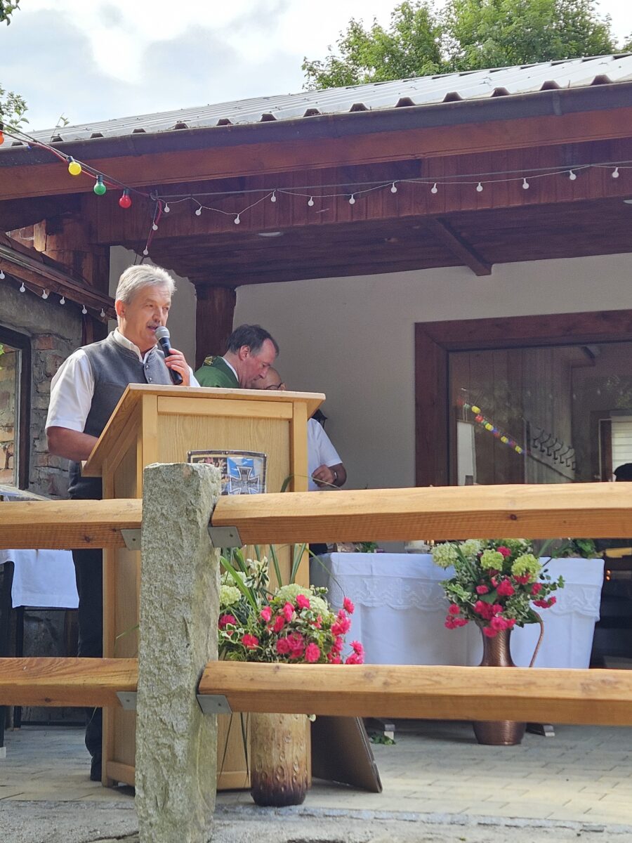 Im Gartengelände des Vereinsheims fand unter freiem Himmel ein Festgottesdienst statt. Pfarrer Liesaus betonte die Bedeutung von Zusammenhalt und einem gesunden Miteinander für das Gelingen einer solch großartigen Initiative. Er beschrieb das Vereinsheim als „Ort des Friedens und der Gemeinschaft“. Die Schola Böhmischbruck und Ferdl Völkl am Piano umrahmten die Zeremonie musikalisch.