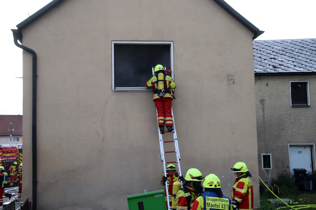 Der Erstangriff folgte über den Haupteingang, ein zweiter Trupp suchte sich einen Weg über einen Nebeneingang. „Zwei Personen konnten unter schwerem Atemschutz aus dem Gebäude gerettet und vom Rettungsdienst versorgt werden”, erläutert Krauß. Nachdem eine weitere Person als vermisst gemeldet wurde, stiegen weitere Floriansjünger über eine Steckleiter durch ein Fenster in das erste Obergeschoss ein.