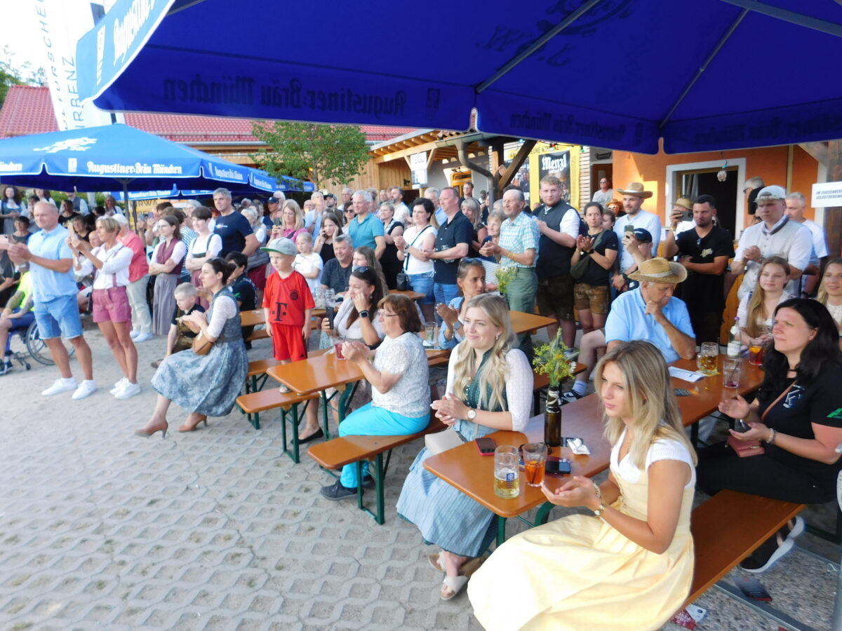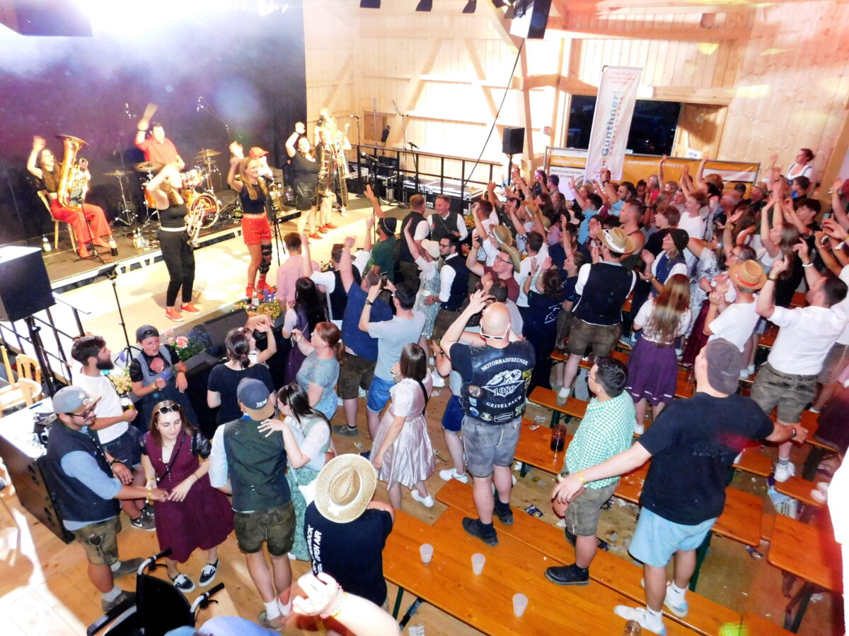 Nicht ohne Grund: Denn die Running Order von der Rüscherl Musi zum Auftakt bis zu den Desperate Brasswives als Headliner in den Abendstunden war klug gewählt – und hatte es in sich. „Das Oberpfälzer Quintett war schon eine Ohrenweide vom Feinsten“, so Norbert Schröter, der als Vorsitzender mit seiner Soldatenkameradschaft am 28. Juni in der Halle die 130-jährige Gründung feiert. Charmant moderiert von Florian Forster ließen die Jungs um den Pleysteiner Pascal Führnrohr in Wirbenz mit alpenländischer Tanzlmusi, gespickt mit oberpfälzischen und oberkrainerischen Elementen sowie modernen Eigenkompositionen und Gassenhauern, echte Lebensfreude hör- und spürbar werden.