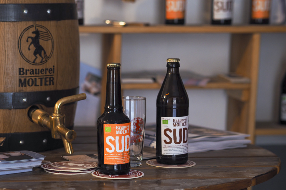 Das erste traditionell hergestellte Bier der Molter Brauerei war Sud 1. Charakteristisch für das naturtrübe Bier ist seine hopfige Note und Süße. Die Zutaten für alle Biere werden aus der Region bezogen, auf Zusatzstoffe wie künstliche Farb- und Aromastoffe wird komplett verzichtet. Dank dieses Konzepts können sich Arne und Lino seit März dieses Jahres über eine offizielle Bio-Zertifizierung für ihr Bier freuen.