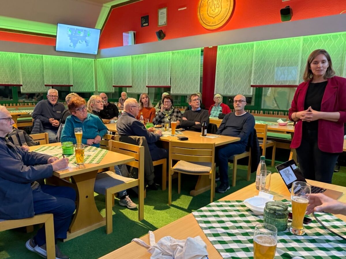 Die Diskussion um die Windkraft bewegt Weiden. Deshalb lud Landtagsabgeordnete Laura Weber mit ihrem Landtagskollegen und energiepolitischem Sprecher Martin Stümpfig zu einem Bürgerdialog ins Sportheim Rothenstadt ein. Über 30 Besucherinnen und Besucher diskutierten über die Chancen der Energiewende.