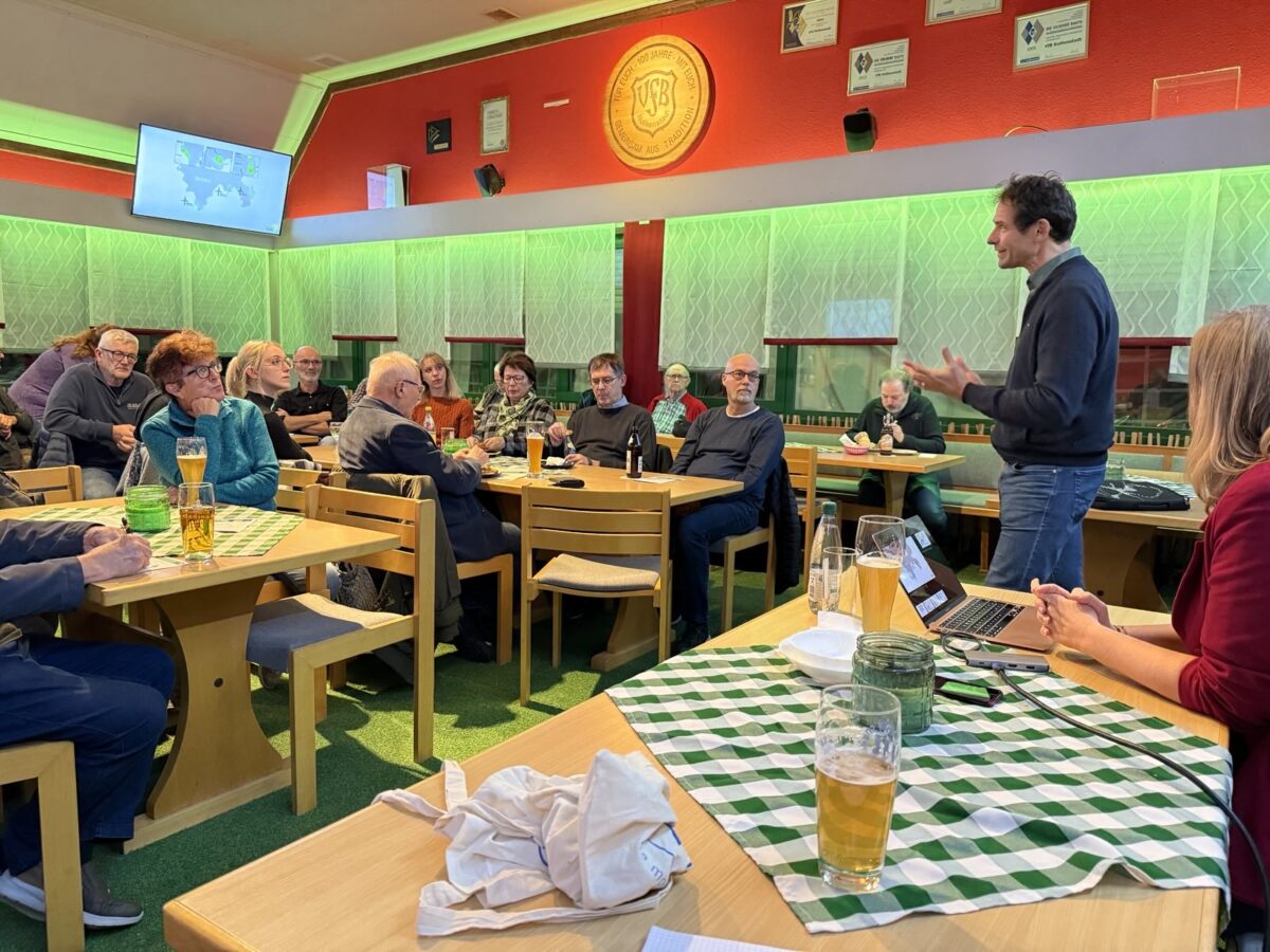 Ein Einwand aus dem Publikum, ein Windrad könne nur 3.000 bis 4.000 Haushalte versorgen, kehrte Stümpfig ins Positive: Im Zusammenspiel mit Photovoltaik könnten Windräder ganze Regionen versorgen. „Wenn die Sonne scheint, geht selten Wind – und umgekehrt“, sagte er.