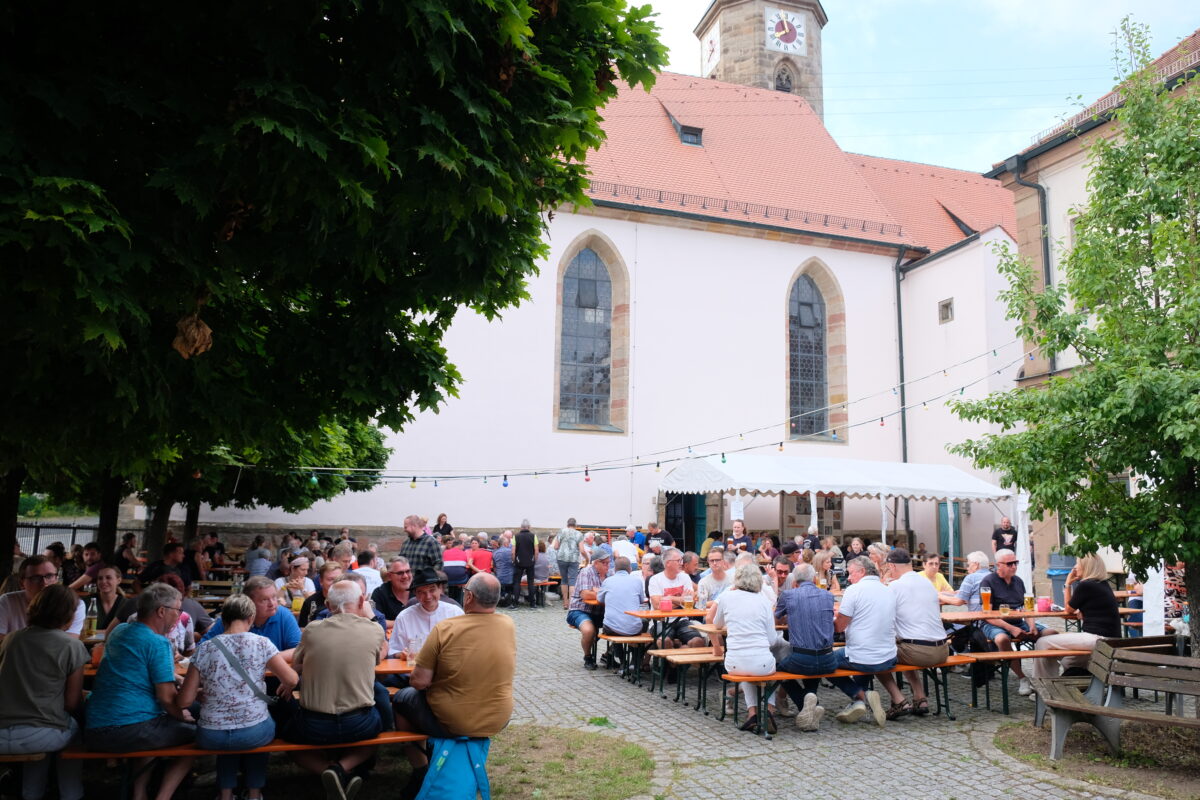 Die Neustädter feierten im idyllischen alten Schulhof ihr traditionelles Bürgerfest. Immer noch ist der riesige Marktplatz eine Baustelle. Doch auch der Ersatz-Festplatz erwies sich als urgemütlicher Biergarten. Bürgerfest in der Kulmstadt, das hieß Zusammenrücken. Dazu luden am Samstagabend im Rahmen eines ökumenischen Gottesdienstes mit musikalischer Begleitung des Posaunenchores in der Dreieinigkeitskirche der evangelische Pfarrer Hartmut Klausfelder und Pfarrer Sven Grillmeier aus Speichersdorf ein. „Vertragt euch und genießt die Gemeinschaft“, hieß es in den Appellen der Geistlichkeit.
