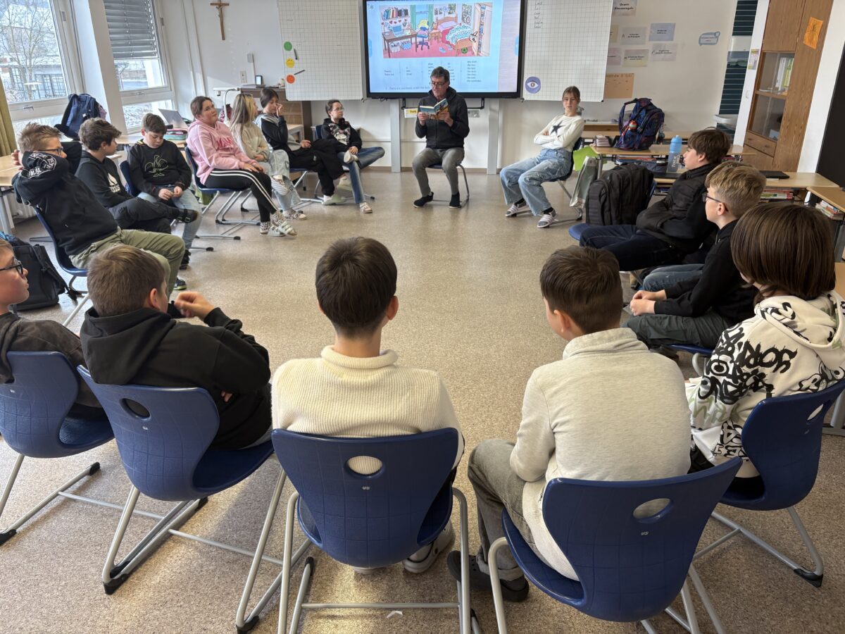 In der Klasse 8M las Förderlehrer Bernd Schatke den Anfang der Klassenlektüre vor. In den beiden Ganztagsklassen zogen die Schulbegleiterin Melanie Schwarzfischer und Jugendsozialarbeiter Jörg Wetzel die Kinder in ihren Bann. In der Klasse 10M fertigten alle ein eigenes Lesetagebuch zur Klassenlektüre.