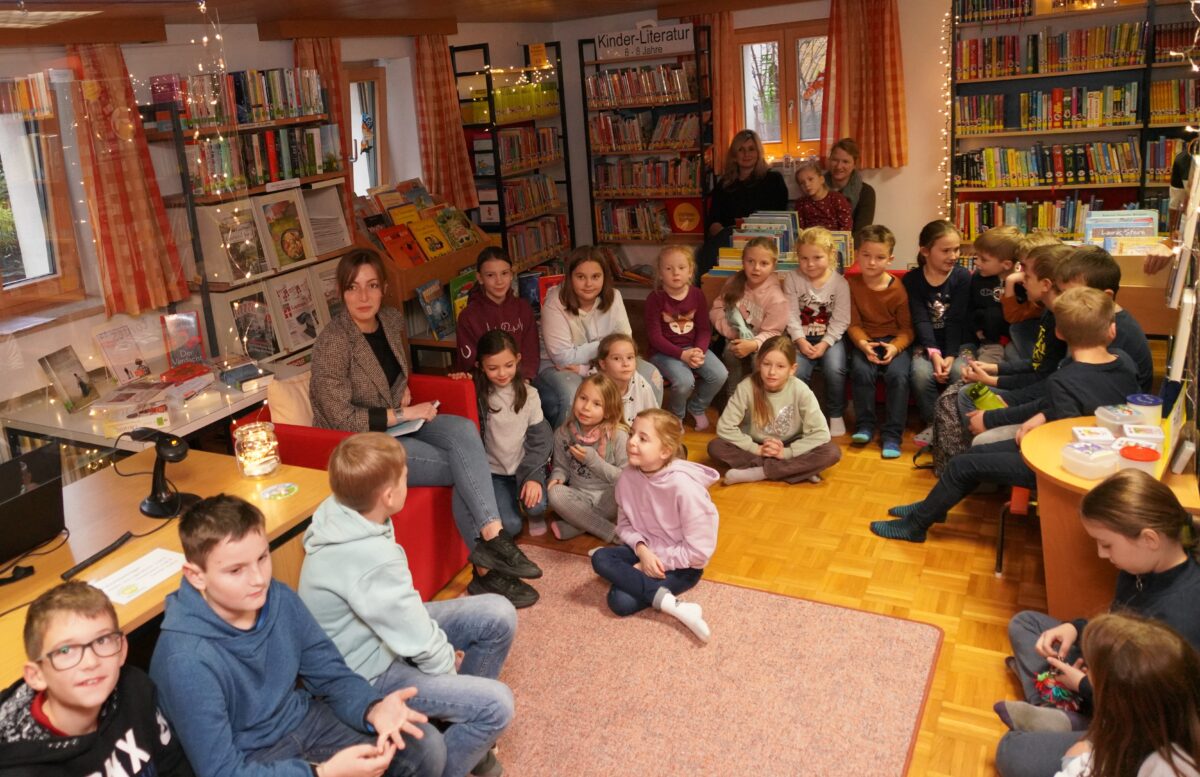 Am Eingang zur Bücherei stapelten sich die Straßenschuhe. Insgesamt 39 Mädchen und Buben sowie fünf Mütter hingen der engagierten und lebhaft agierenden Vorleserin förmlich an den Lippen. Cornelia Greiner-Braun, Marlene Greiner und Judith Friedl vom Bücherei-Team hatten Kinderpunsch bereitet.