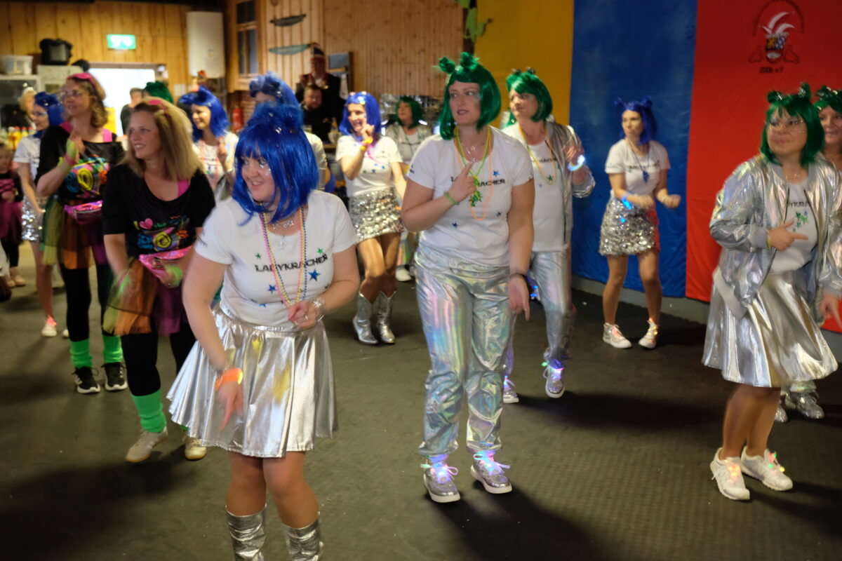Als Space-Botschafter aus fernen Galaxien appellierten die Ladykracher an die Erdenmenschen, Kriege durch Liebe zu ersetzen, während die Rußweiber-Männertruppe, von einem anderen Stern aus den unendlichen Weiten des Universums kommend, dem Erdenvolk bei akrobatischen Tanzübungen ihre sportliche Überlegenheit demonstrierte. Zwischendurch hieß es für die Kids, sich bei fetzigen Rhythmen einfach auszutoben.