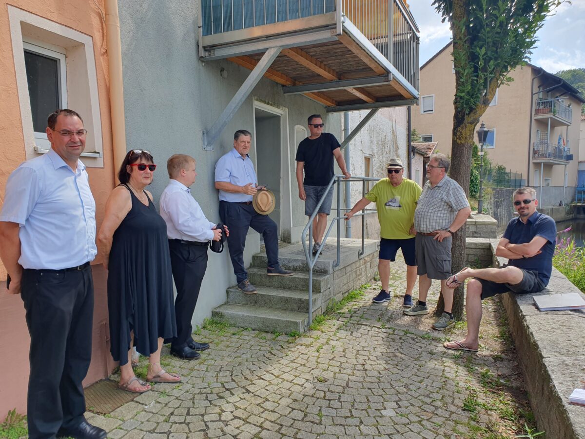 Anfang des Jahres 2024 wurden erste Ergebnisse und mögliche Varianten des technischen Hochwasserschutzes vorgestellt. Basierend auf der Annahme eines großflächigen Überschwemmungsgebiets, berechnete das in enger Absprache mit der Stadt erstellte Konzept verschiedene Maßnahmen. In einer jüngst abgehaltenen Klausurtagung wurden diese Maßnahmen vor Ort besprochen, um eine bessere Vorstellung von der Höhe der projektierten Mauern zu bekommen. Zu diesem Zweck wurden an fünf verschiedenen Stellen, wie beispielsweise der Uferpromenade oder der Naabgasse, Lattenkreuze errichtet.