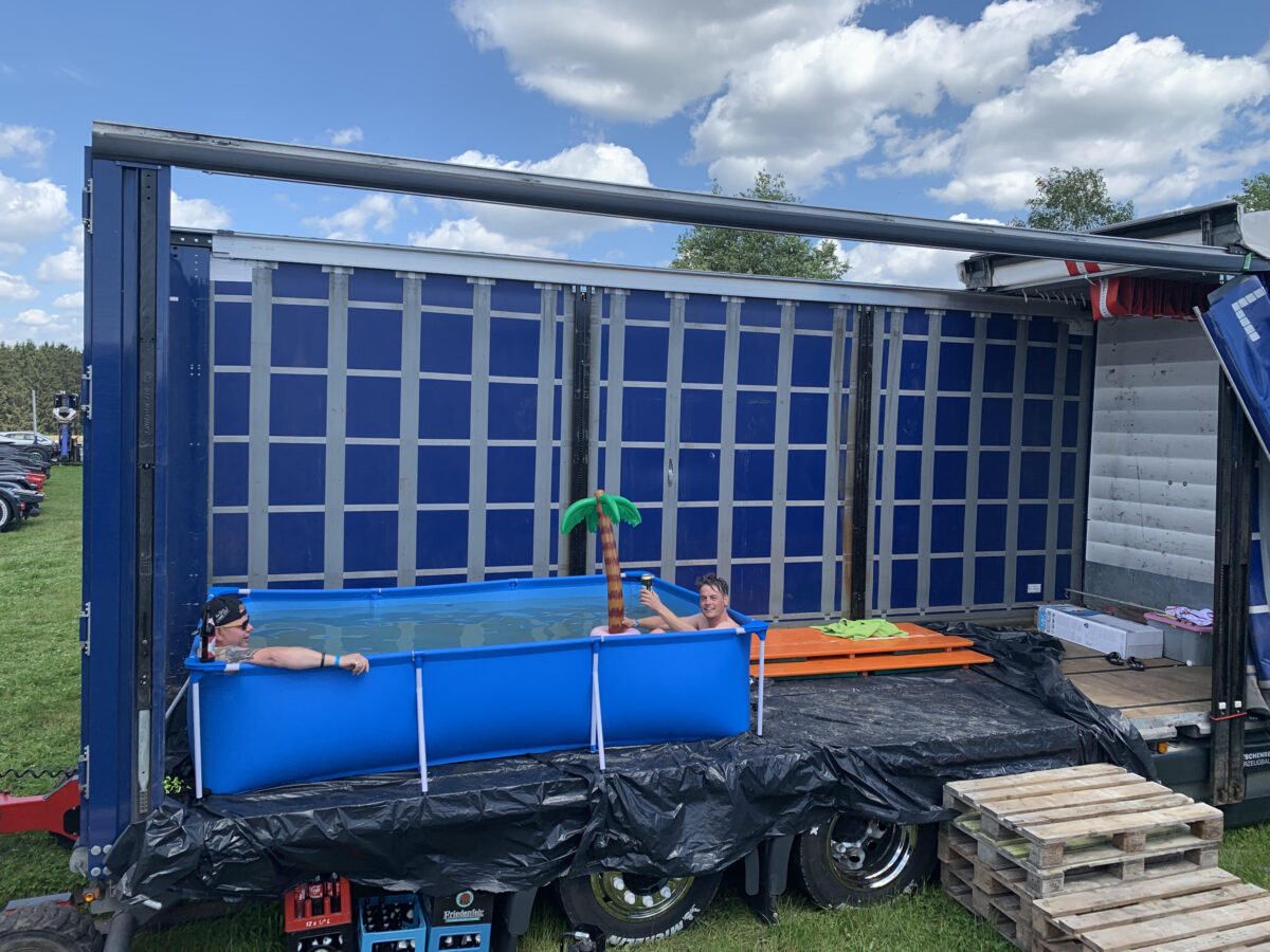Carrera-Bahn und Swimmingpool im Lkw immer dabei
