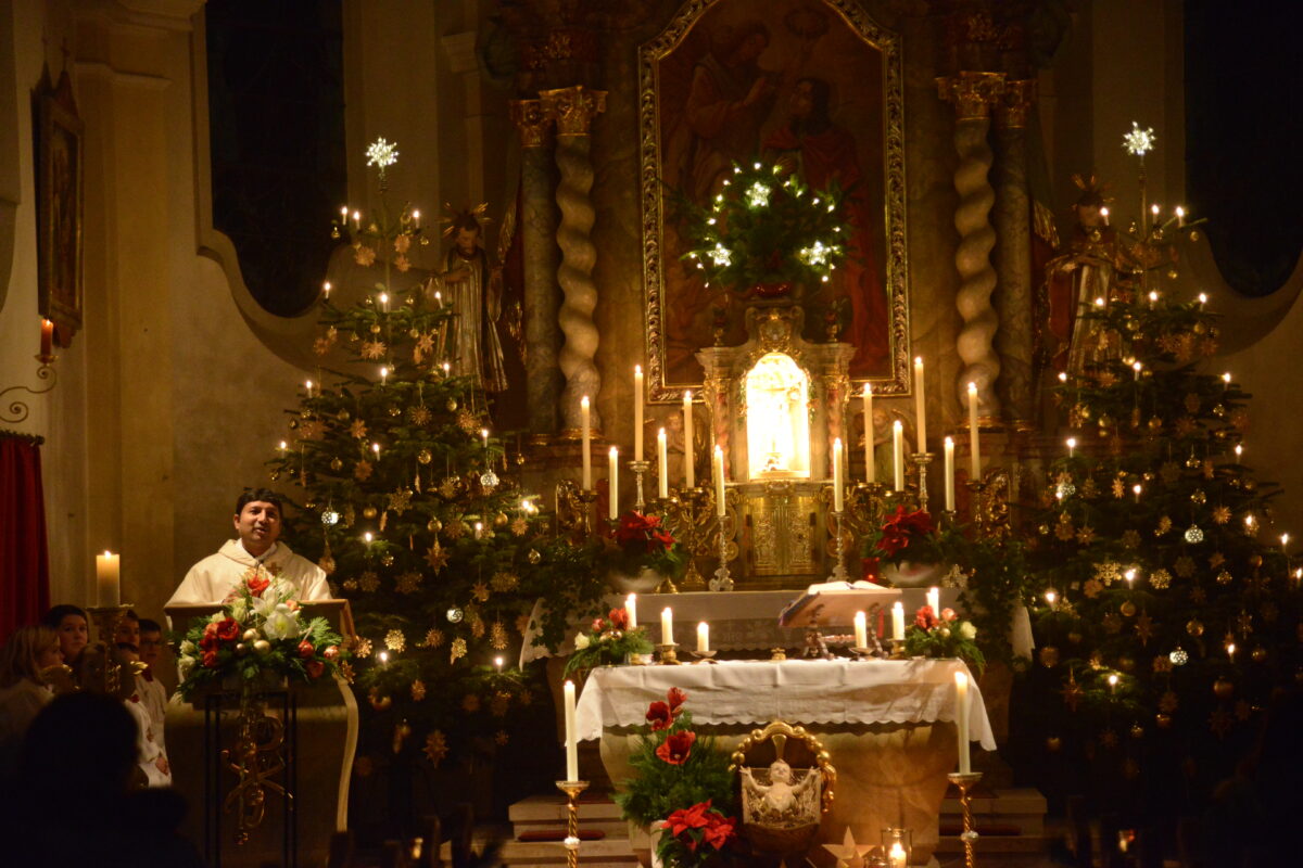 Die Kirche zauberte eine festliche Atmosphäre mit teilweise echten Kerzen. Gläubige und Besucher konnten sich von der Eleganz und Pracht der Weihnachtsdekoration, die die Wände und Bänke der Kirche schmückten, überzeugen. Bei der Christmette trug Pater John Galli die Weihnachtsgeschichte vor. Es ist eine Tradition, die die Geburt Jesu zelebriert.