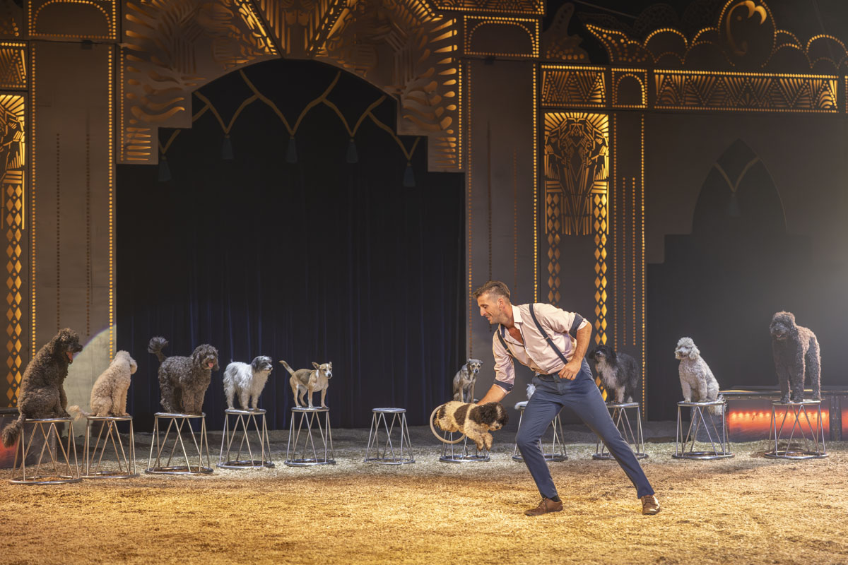 Gewinner der Herzen ist am Donnerstagabend sein jüngerer Bruder. Thomas Lacey hat eine Meute von 11 schwanzwedelnden Hunden in allen Größenordnungen im Schlepptau. Ihre Kunststückchen machen Spaß beim Zusehen: “Who let the dogs out?” Thomas Lacey wird mit dieser Nummer fest ins Programm aufgenommen, wie er in der Pause verrät. Auch am Winterstandort in München bleibt er vor Ort.