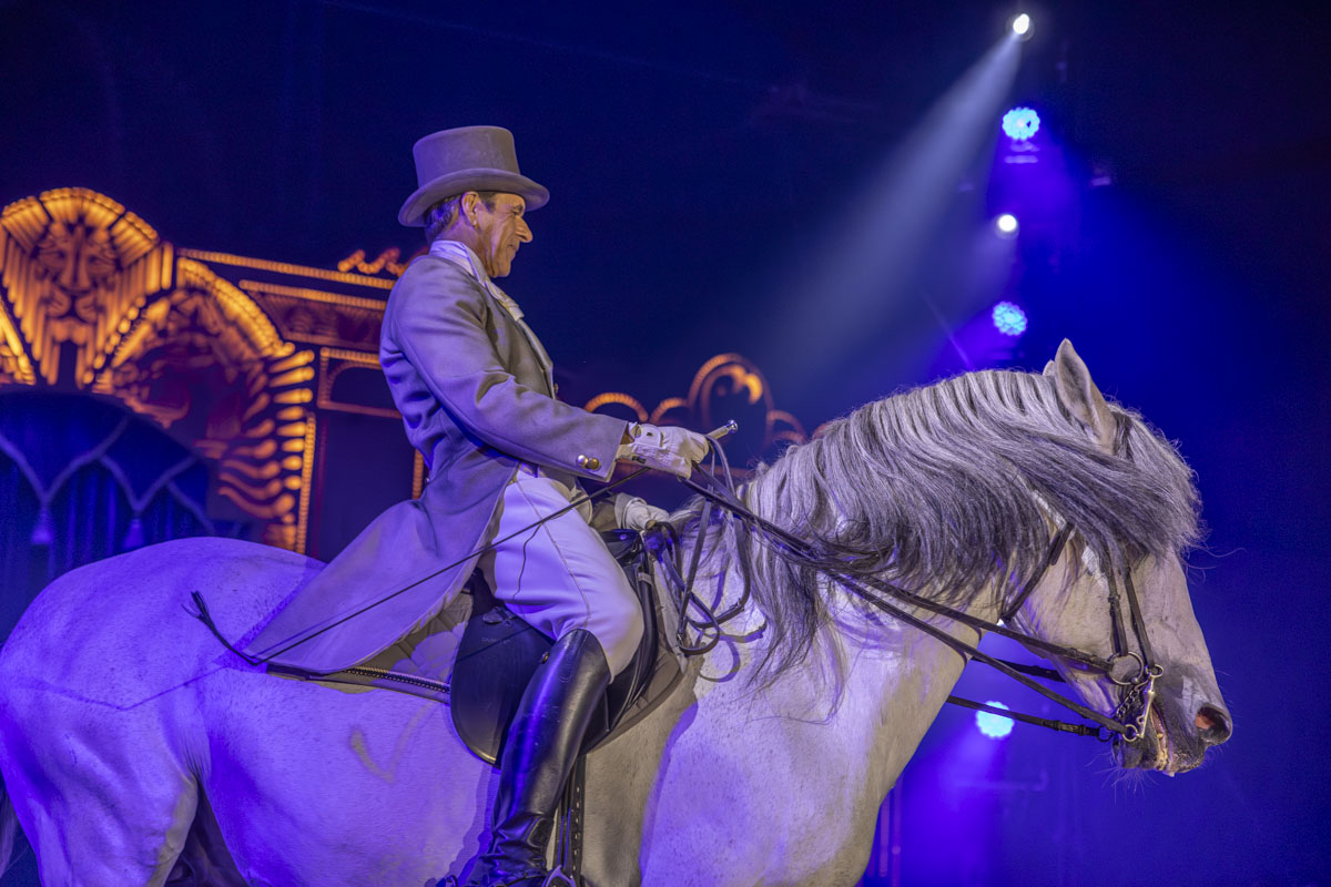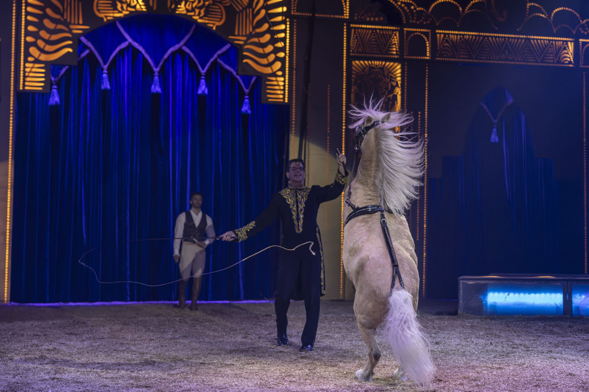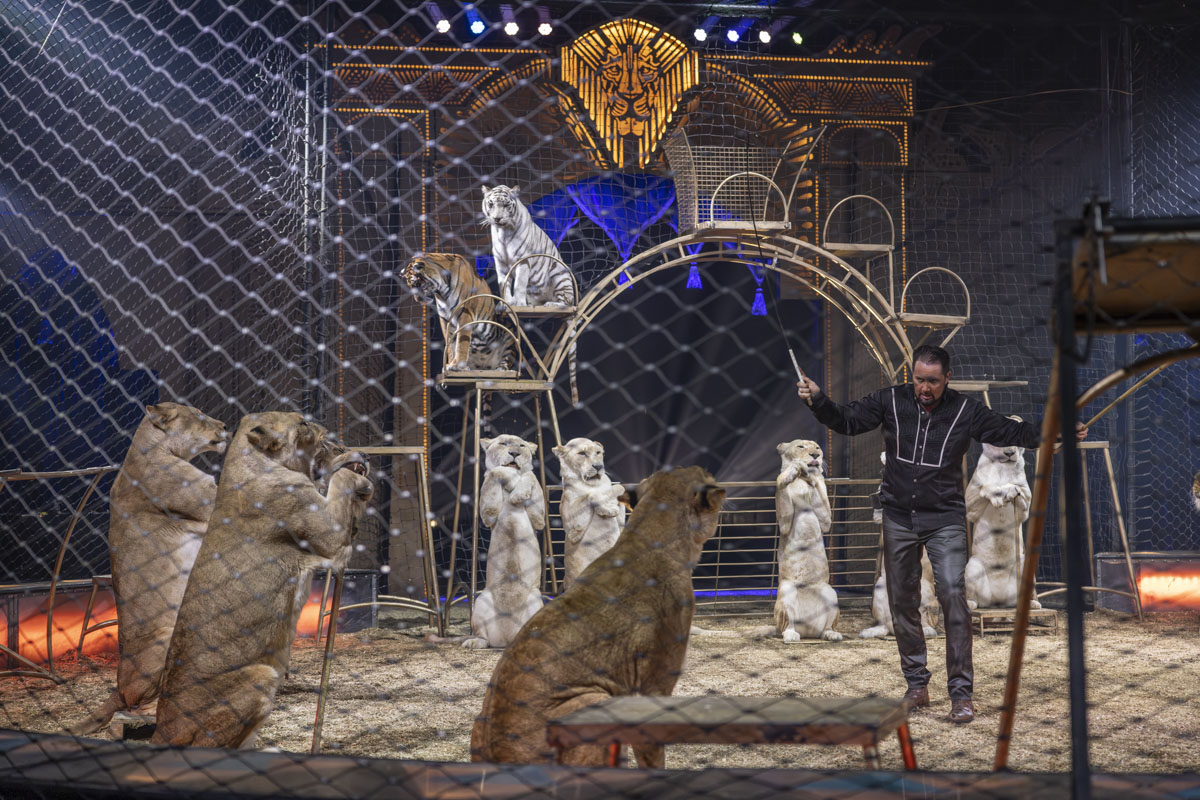 Man würde sich wünschen, sie würden sich eine Vorstellung ansehen. Im “Zirkus 2023” hat sich viel verändert. Die Elefanten sind im Altersruhesitz, einem Safaripark im spanischen Sevilla. Lamas, Zebras, Dromedare können auf der Krone-Farm im oberbayerischen Wessling besucht werden. Externe Tiernummern – wie einst die Seelöwen des Schweizers Roland Duss – sind nicht mehr im Programm. Die Lacey-Krones reisen nur noch mit den eigenen Tieren, die quasi Familie sind: knapp 40 Pferde, 16 Raubkatzen und ein Dutzend Hunde.