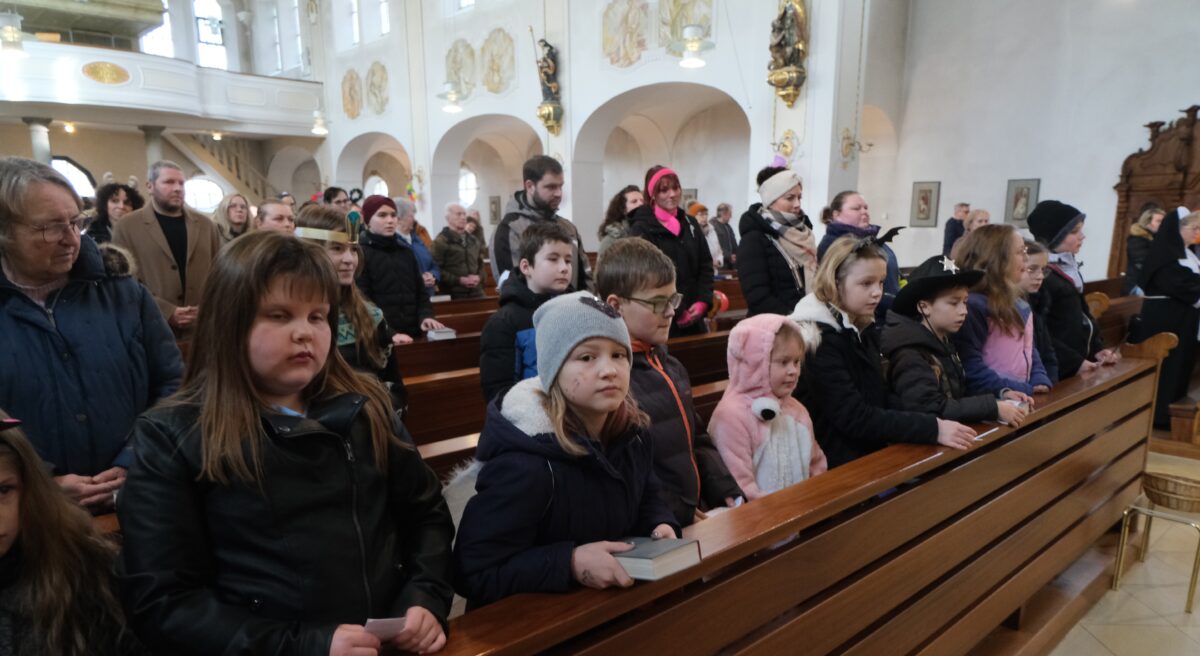 Es war für Pfarrer Max Früchtl eine besondere Ehre, die Familien mit ihren Kindern, die Erstkommunionkinder, Gefirmte und junge Leute zum Familiengottesdienst am Faschingssonntag in der Pfarrkirche St. Johannes der Täufer zur Mitfeier einzuladen. Die Mädchen und Buben durften im Faschingskostüm und maskiert kommen. Die Eucharistiefeier stimmte Elisabeth König von den Kirchenmäusen, die ebenfalls kostümiert auftraten, freudig ein.